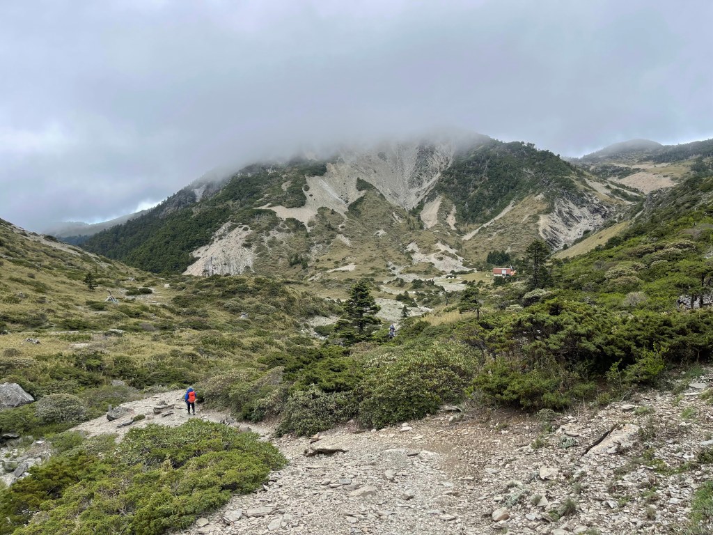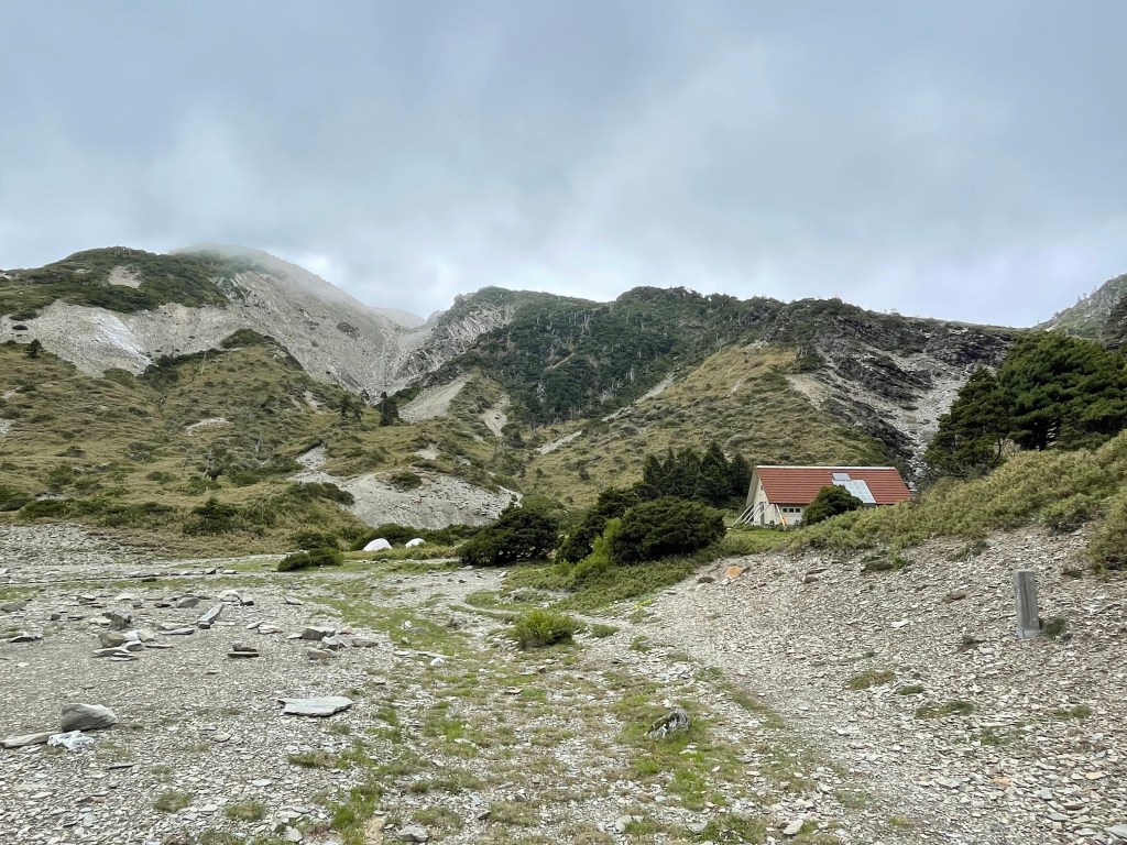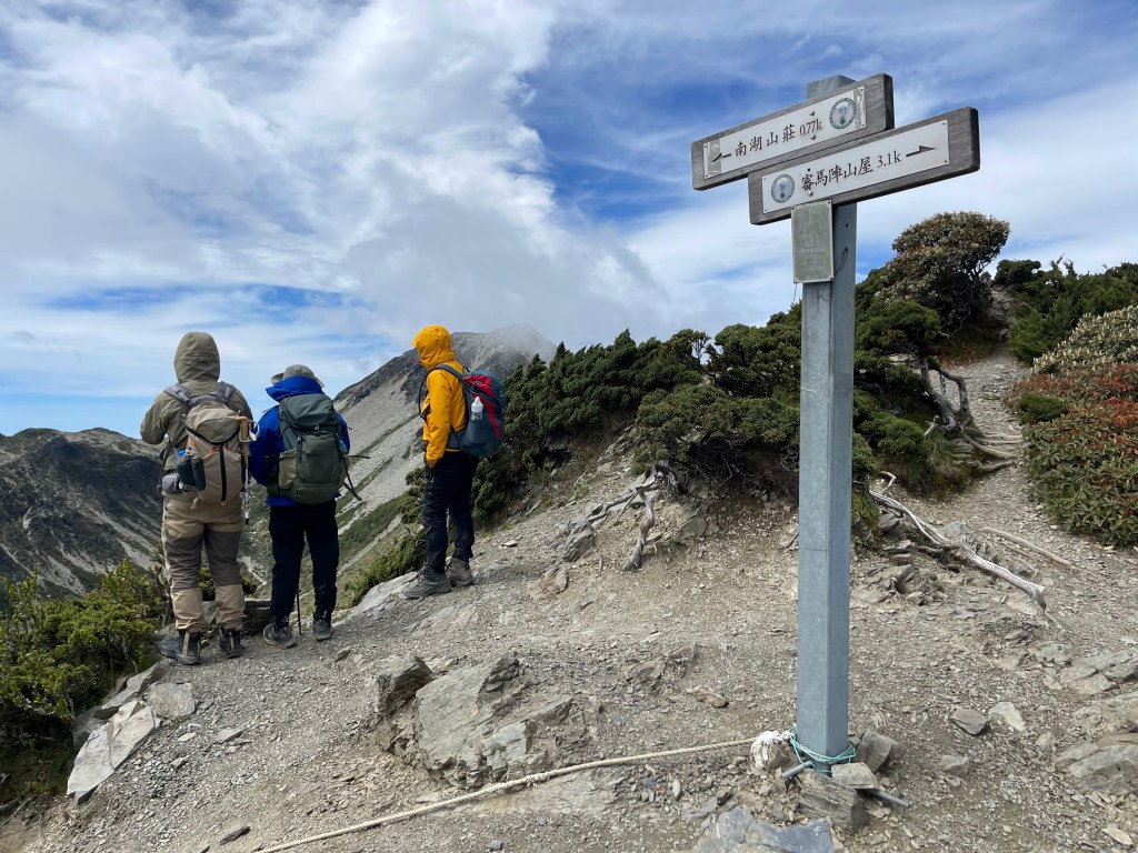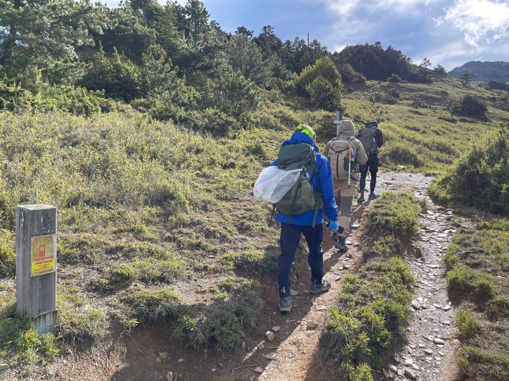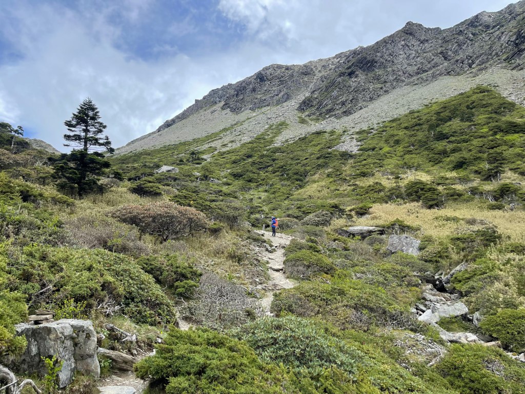 下了碎石坡,來到了21.0K的南湖山屋,我們四人就在此稍微休息一下,吃一些行動糧,再準備往南湖大山來攻頂。我們決定輕裝上陣,只有David原裝而行。