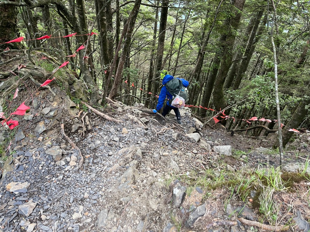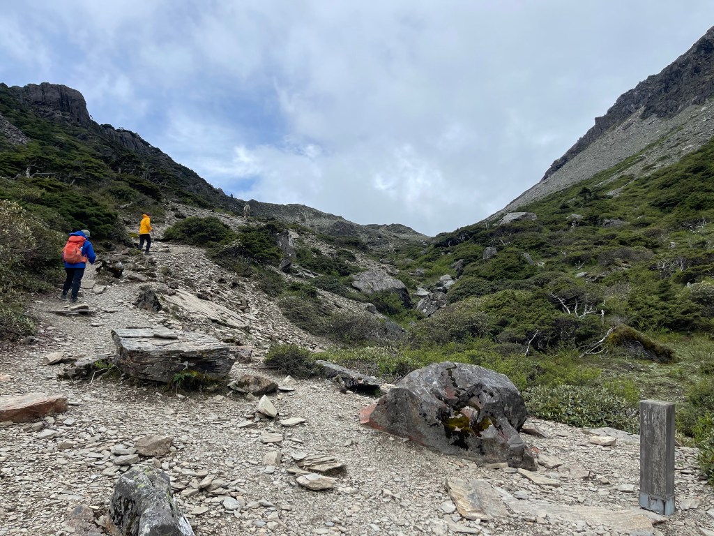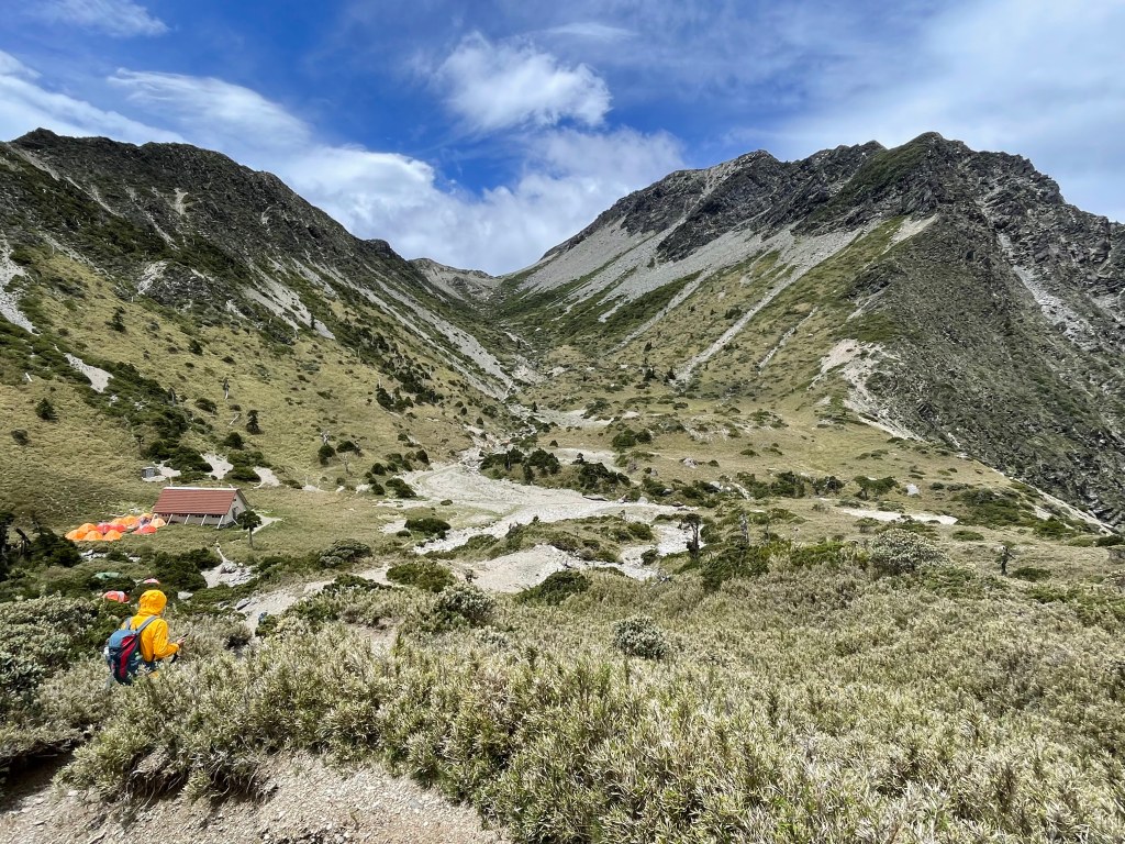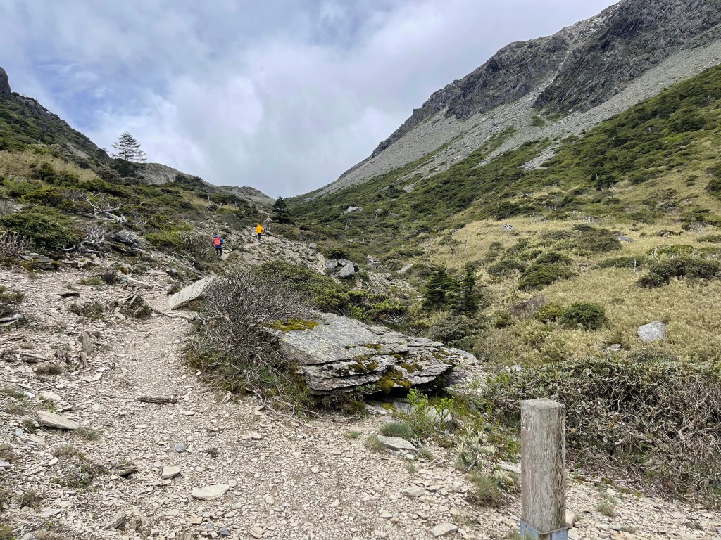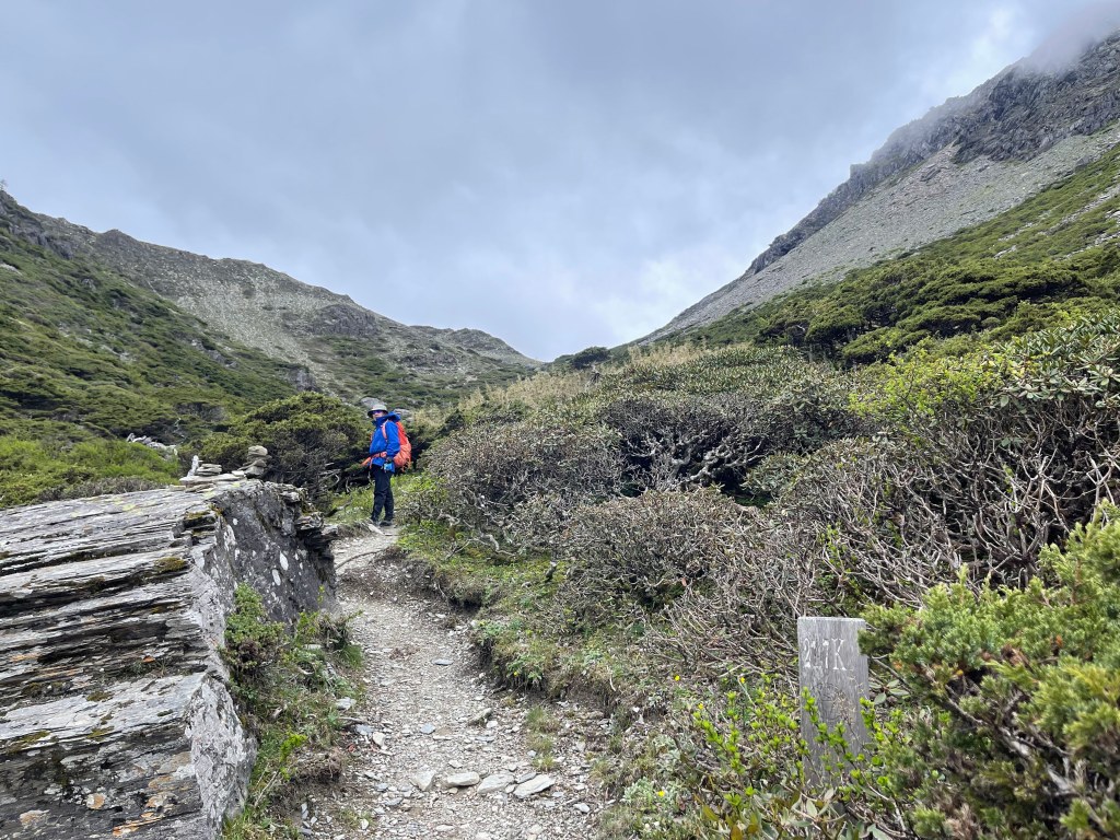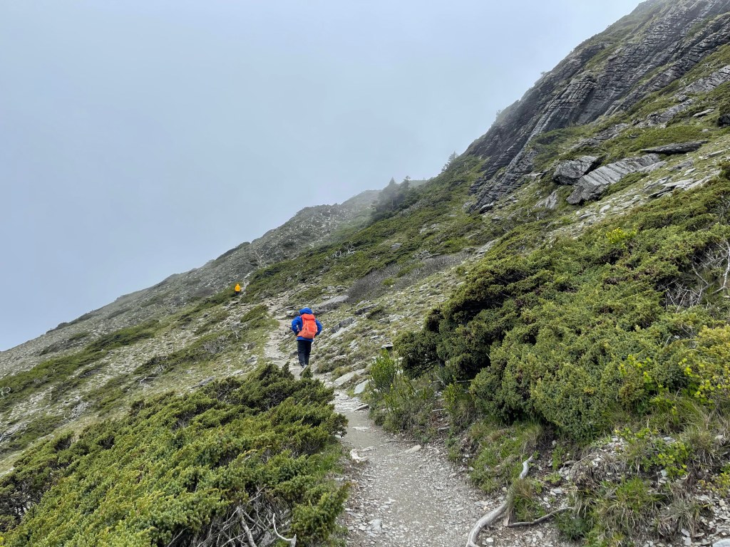下了碎石坡,來到了21.0K的南湖山屋,我們四人就在此稍微休息一下,吃一些行動糧,再準備往南湖大山來攻頂。我們決定輕裝上陣,只有David原裝而行。