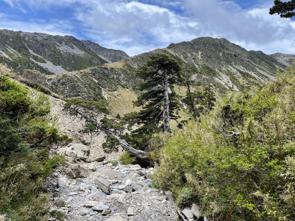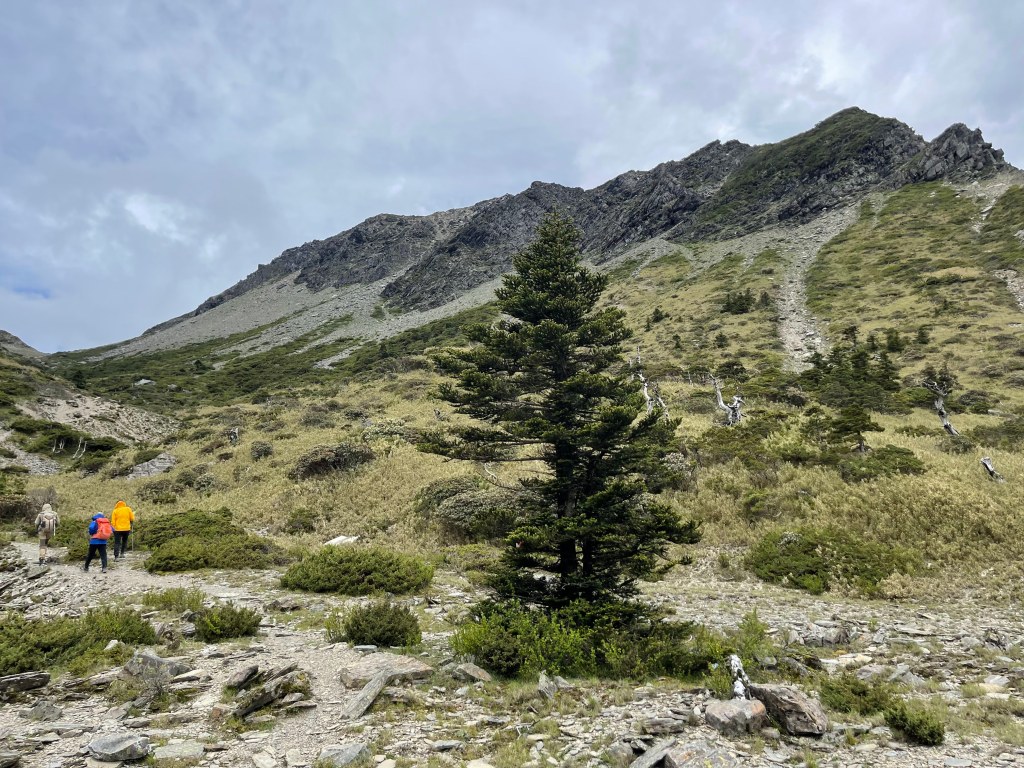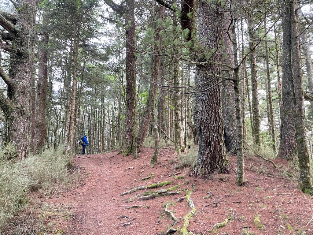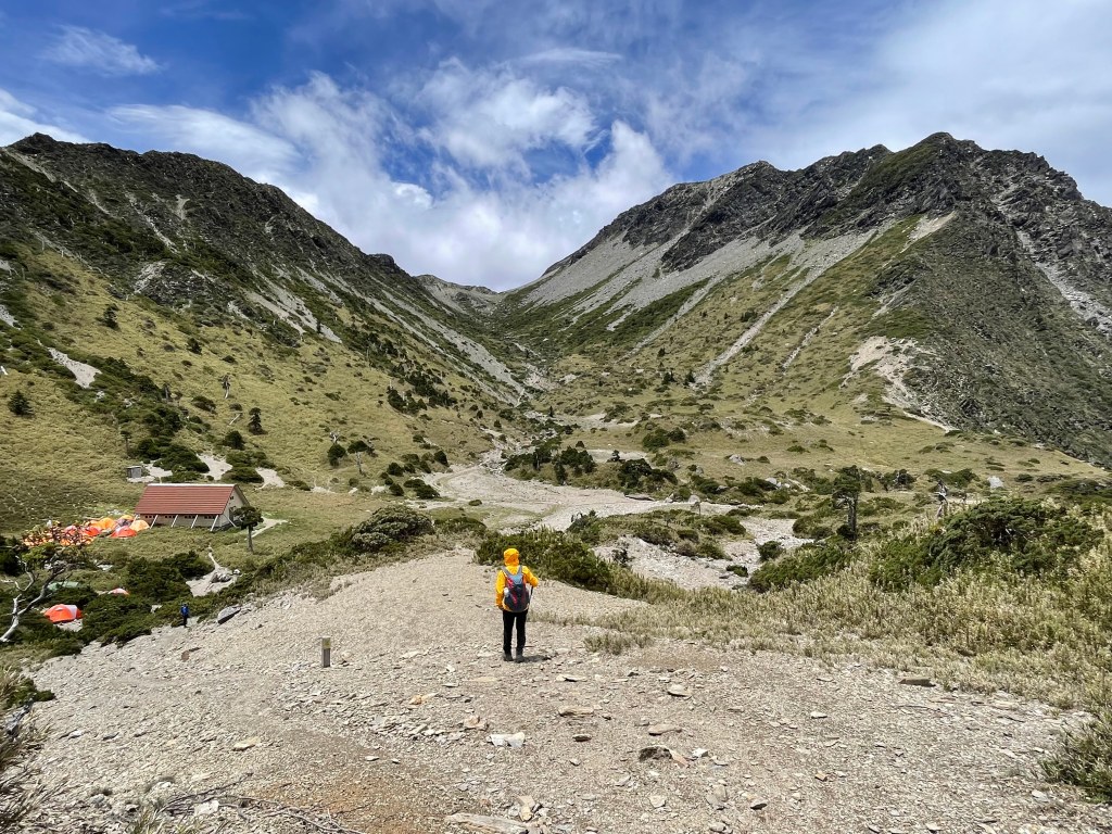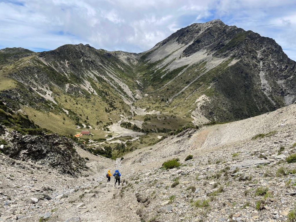 下了碎石坡,來到了21.0K的南湖山屋,我們四人就在此稍微休息一下,吃一些行動糧,再準備往南湖大山來攻頂。我們決定輕裝上陣,只有David原裝而行。