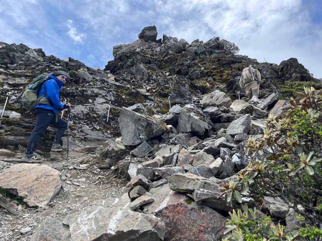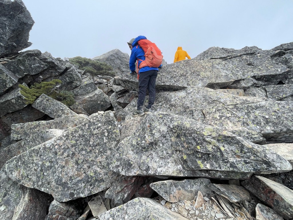 (5)過五岩峰、陡下碎石坡,來到南湖山屋