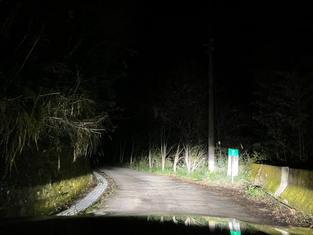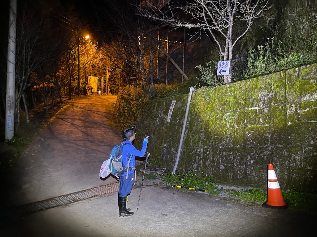 由此要出養老步道口還有6.8K的距離,兩人快走並一路互聊著,以前一日單攻霞喀羅古道的回憶!過了馬鞍後,古道在17K處有封鎖線封閉,必須由右側高繞,這段高繞路不長,約300m,就會再度接回古道。在萬籟寂靜中,晚上約7:30出古道步道口,再走600m回到嘎密家,此時葉老闆(文彬)也正等待著我們的回來,還說我們再不回來,就要騎車進去找我們啦!今晚他也要開車下山,去跟家人團聚。