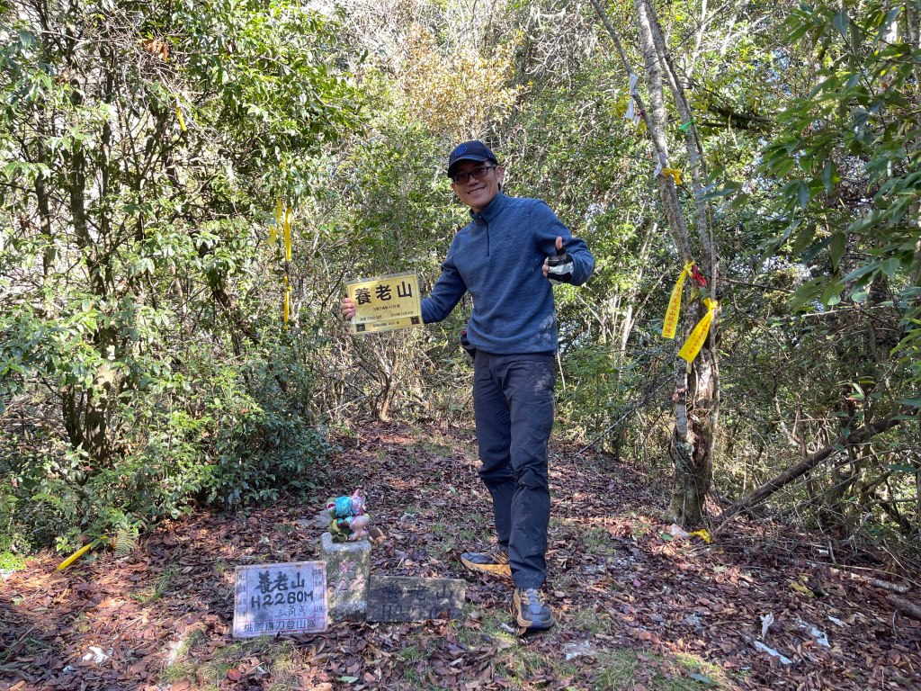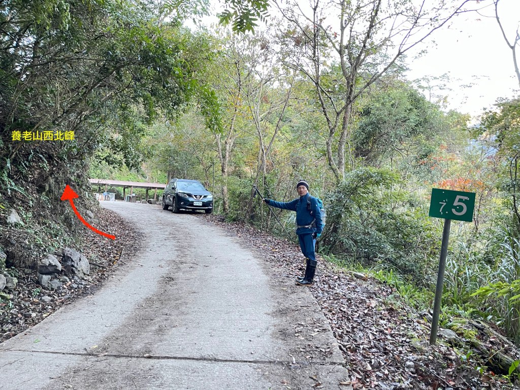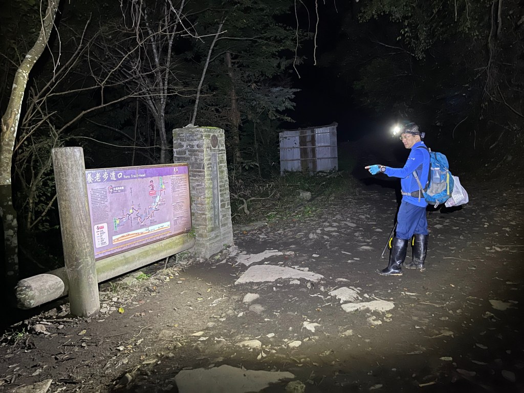 本來是預計清晨6點前起登,但是,冷鋒過境只有2度,實在太冷!直到早上7點才離開嘎密家民宿,其實養基布O型,可以不走養老山西北峰,可直接請嘎密家民宿葉老闆接駁,由養老步道口開9K的產業道路約40分鐘到養老山登山口,這樣可以節省你2小時以上的時間,而且也才收NT200,偏偏Smile就想自己經歷,好!捨命陪大嬸!