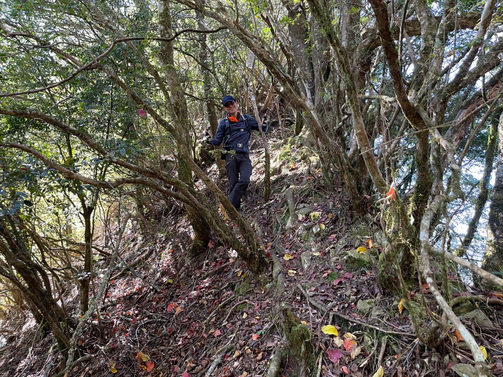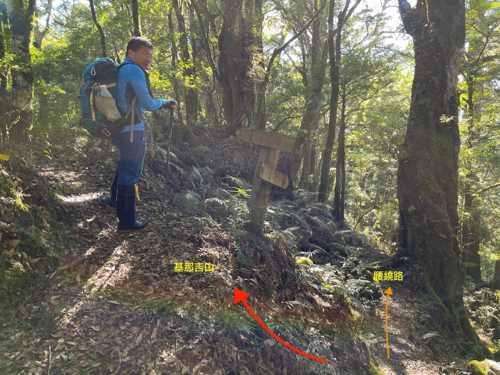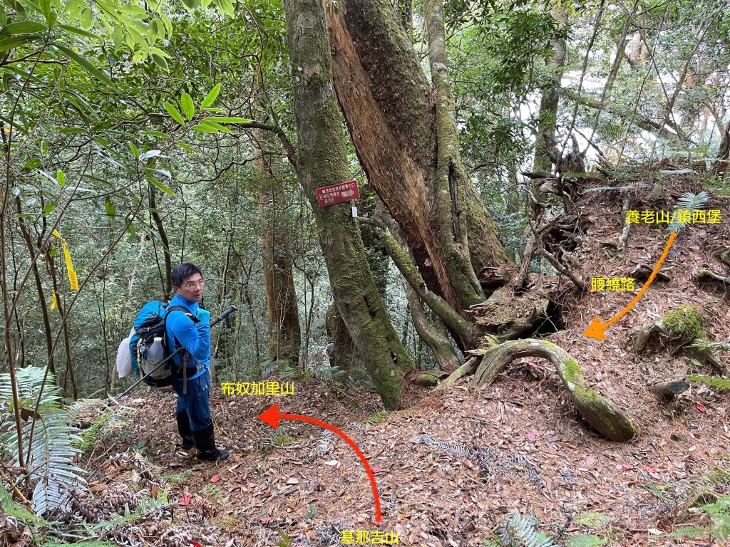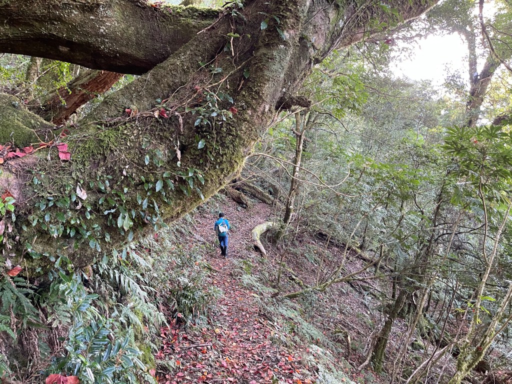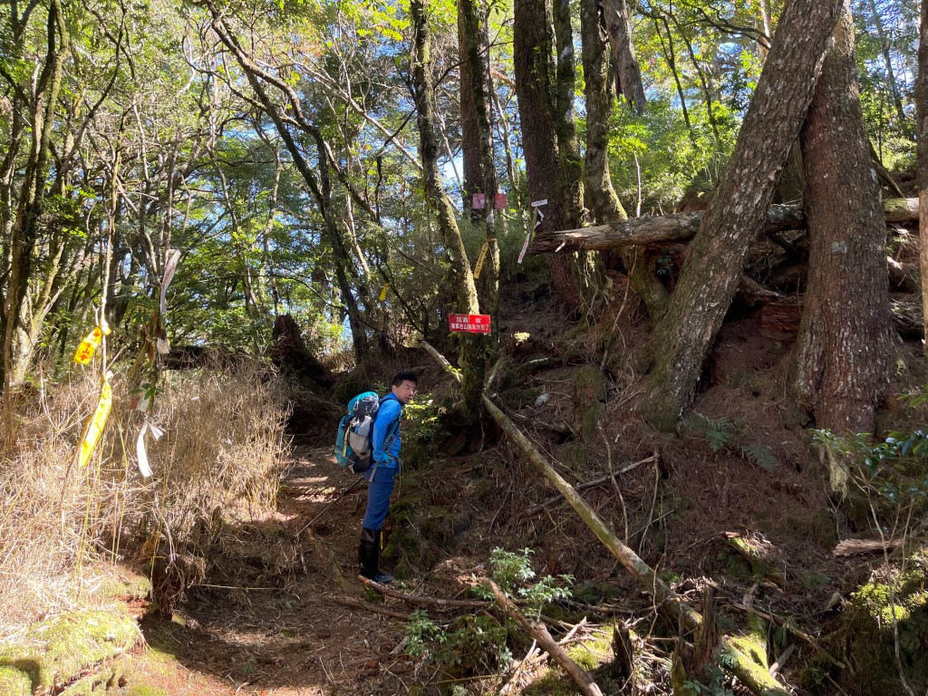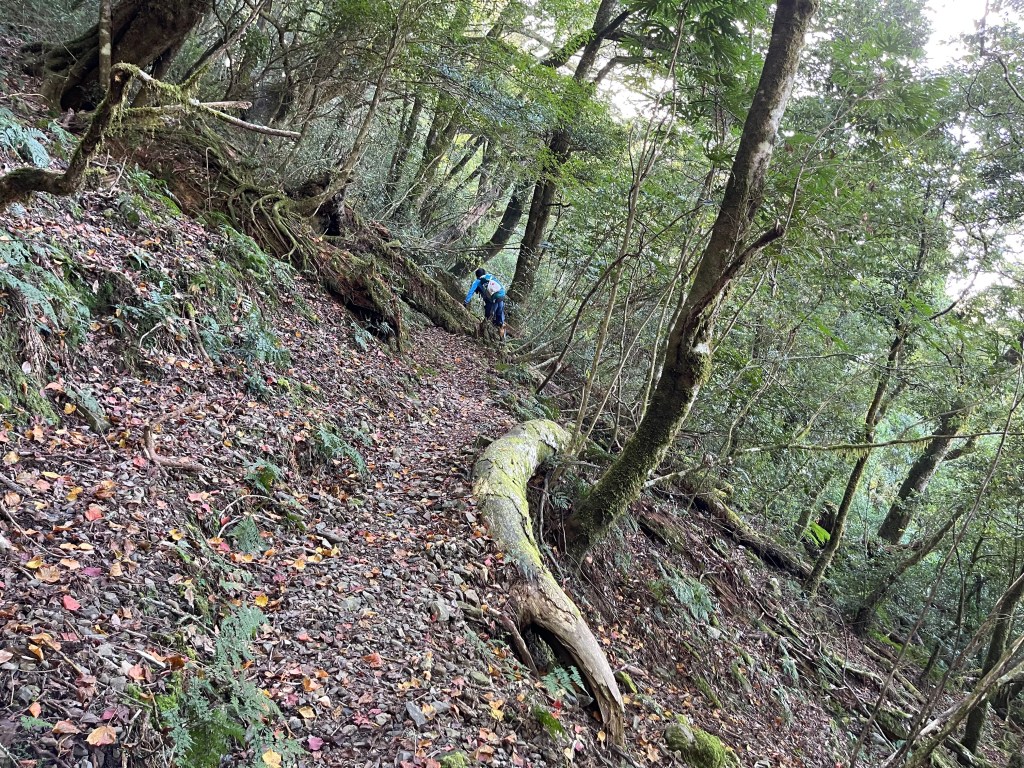 此時Leo已經等了我們快40分鐘,Smile與我,在此進食午餐,這時Leo想在天黑前好好的拍楓葉,因此就跟我們道別,先往霞喀羅古道衝了🏃🏻!我們在基那吉山也休息了30分鐘,在下午1:30左右,也開始往布奴加里山方向走,這一段的距離有4.5K,此段路徑要分兩部分說明:
