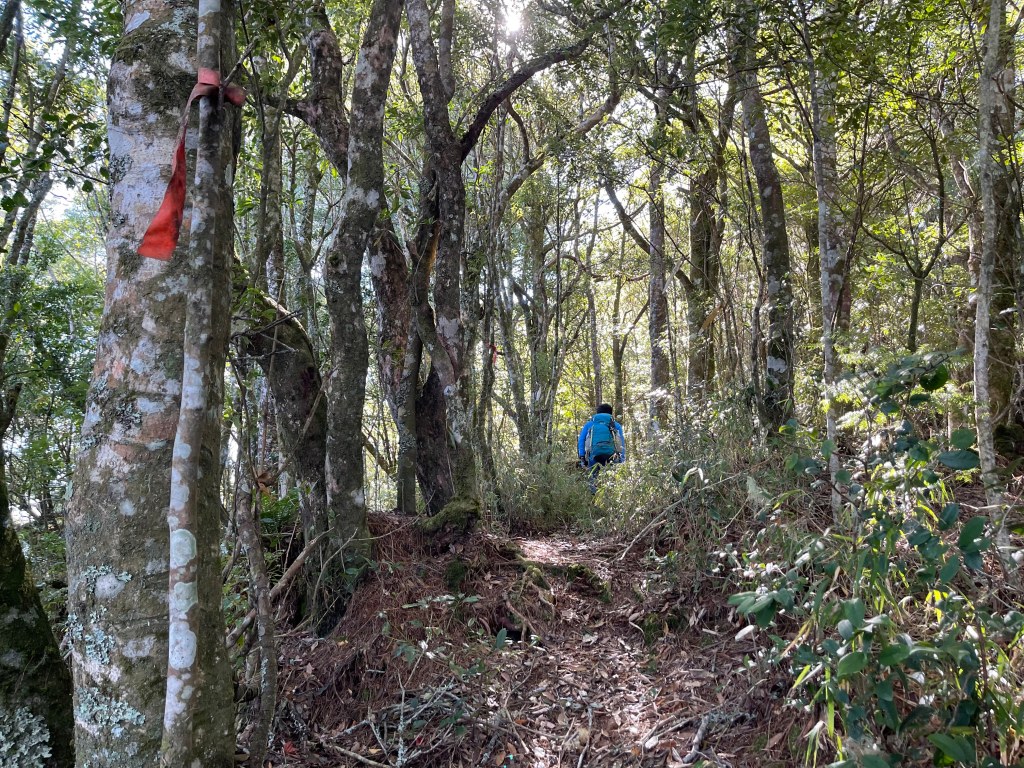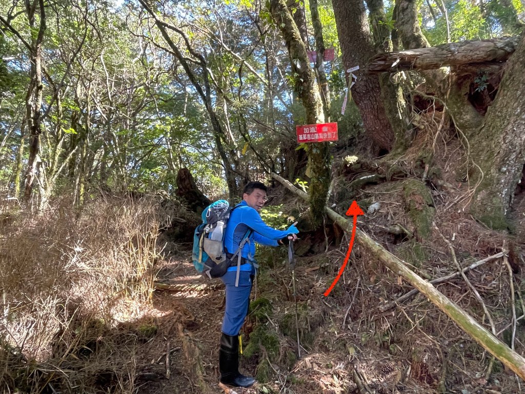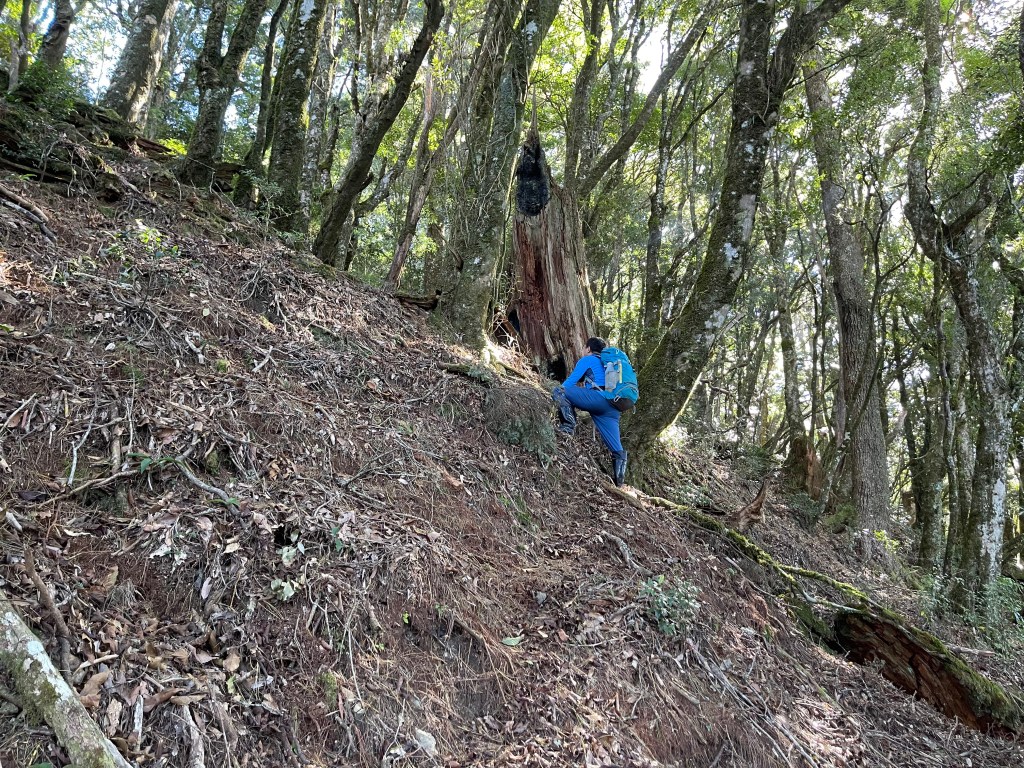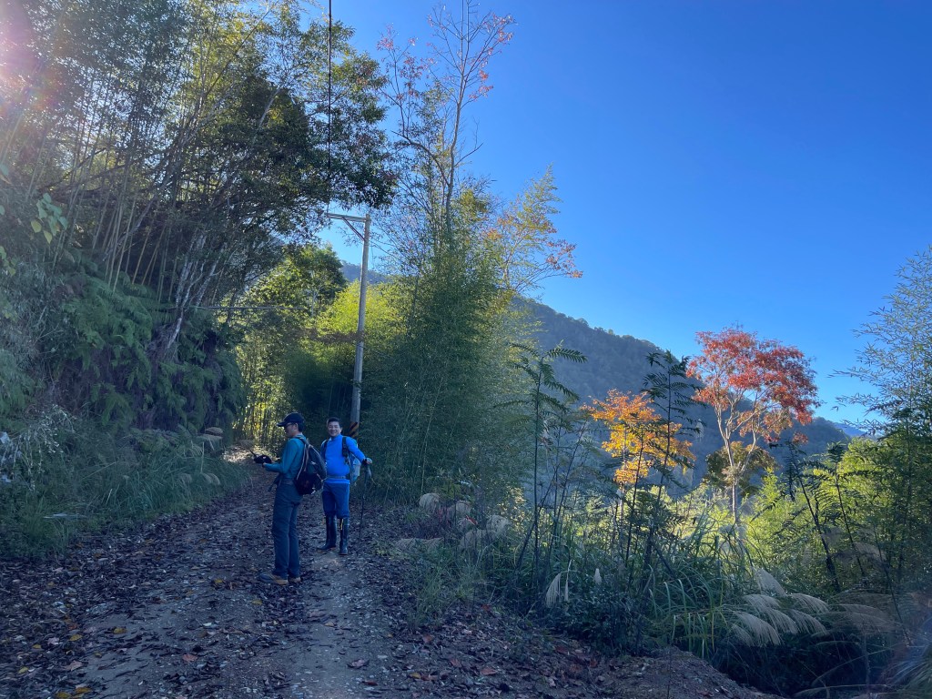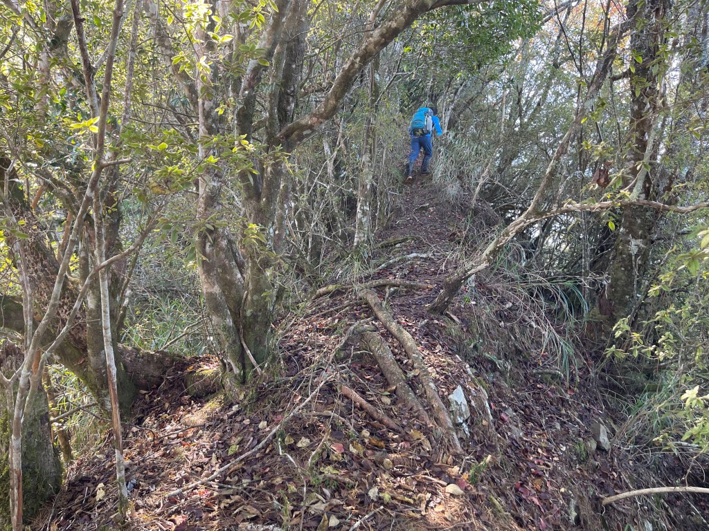 此時Leo已經等了我們快40分鐘,Smile與我,在此進食午餐,這時Leo想在天黑前好好的拍楓葉,因此就跟我們道別,先往霞喀羅古道衝了🏃🏻!我們在基那吉山也休息了30分鐘,在下午1:30左右,也開始往布奴加里山方向走,這一段的距離有4.5K,此段路徑要分兩部分說明: