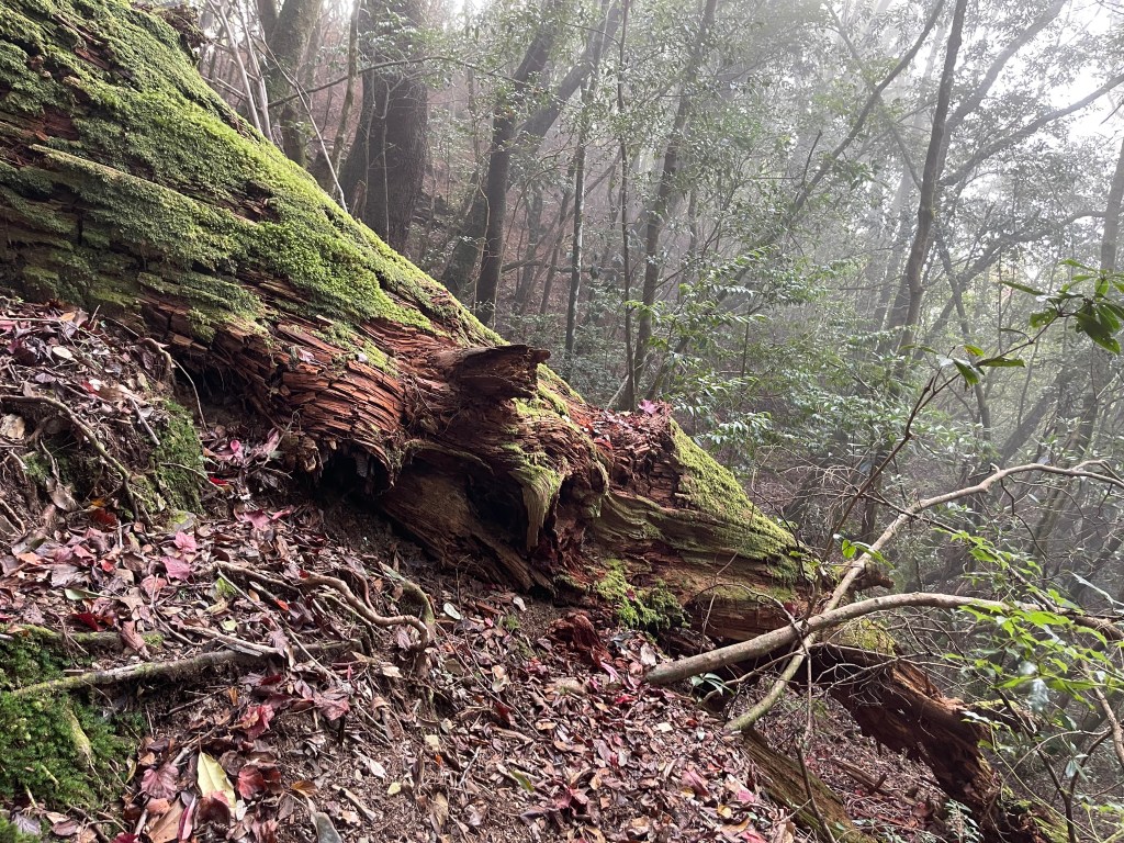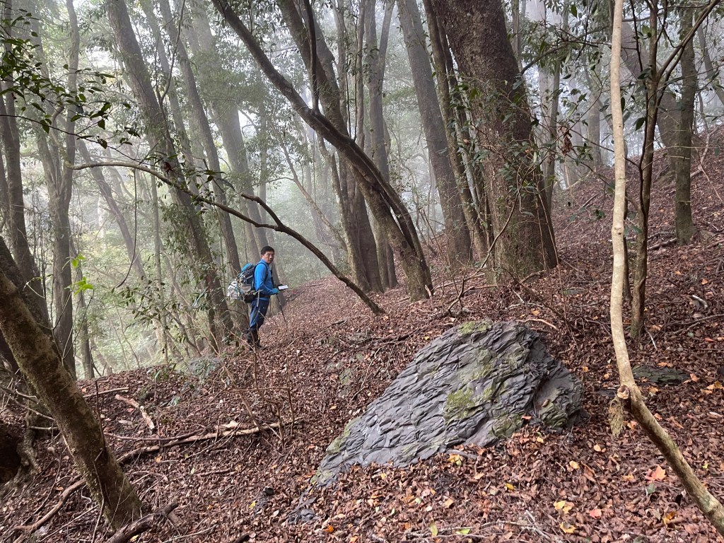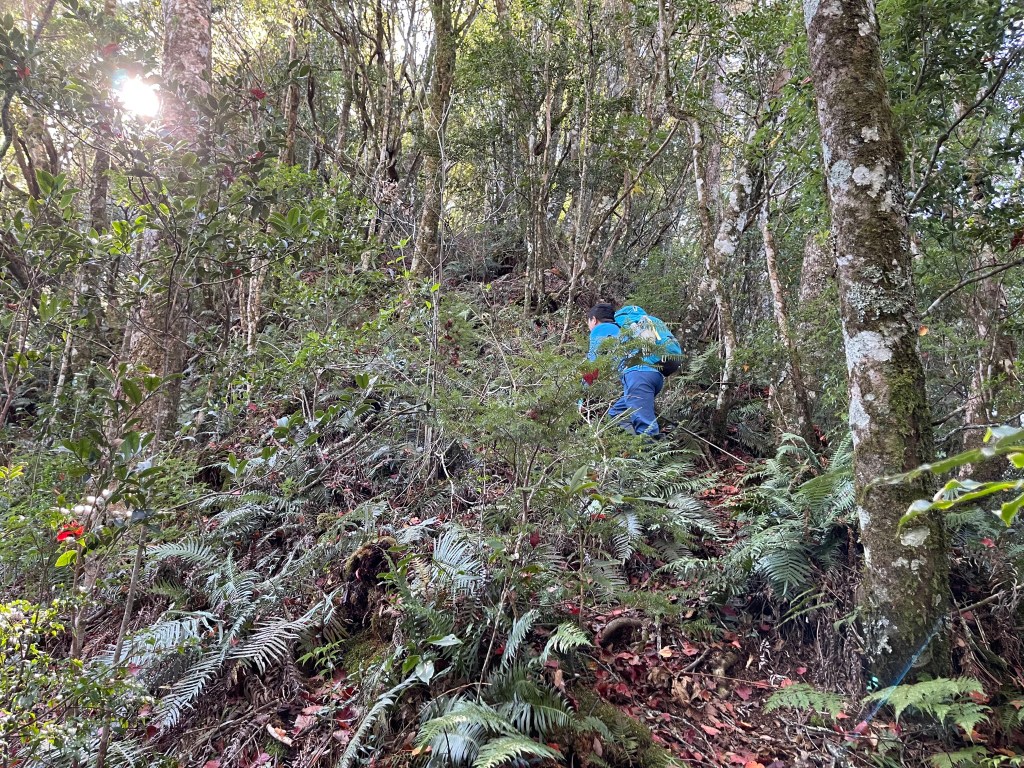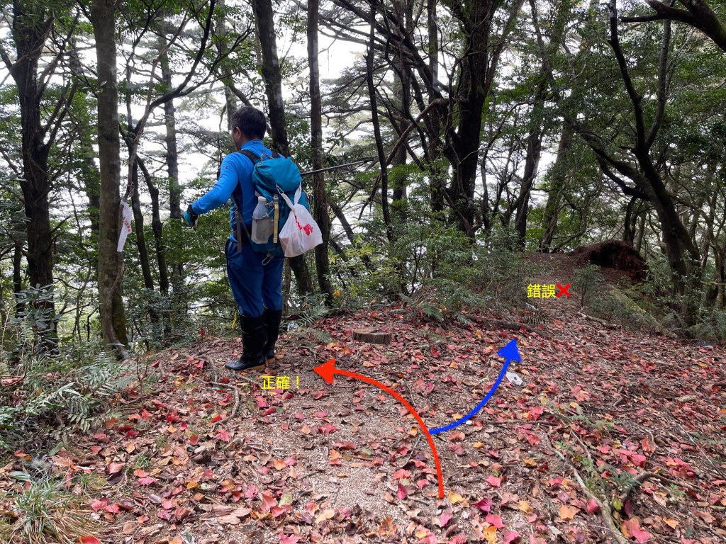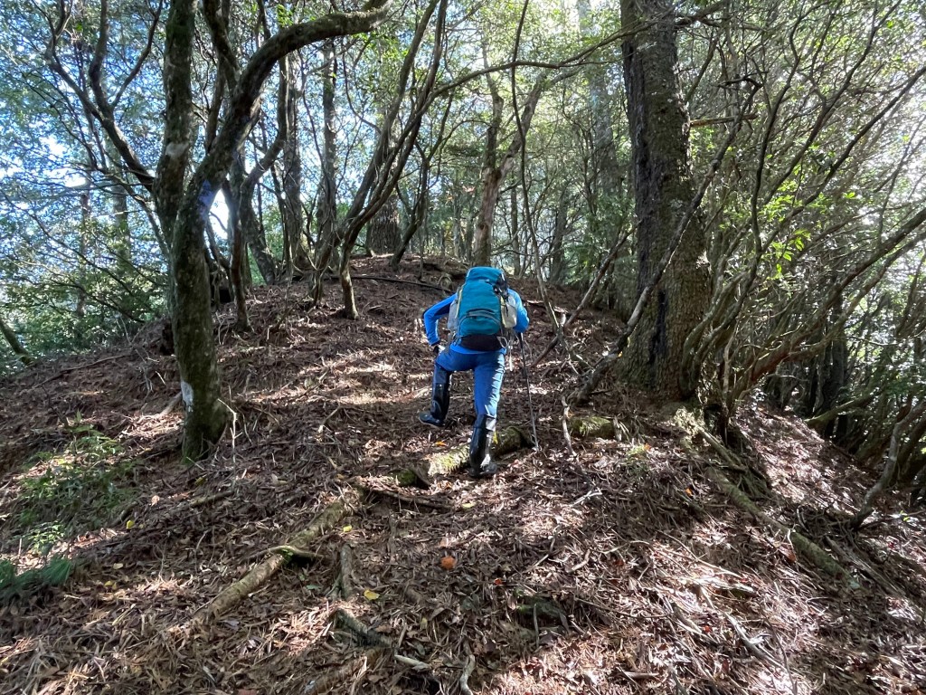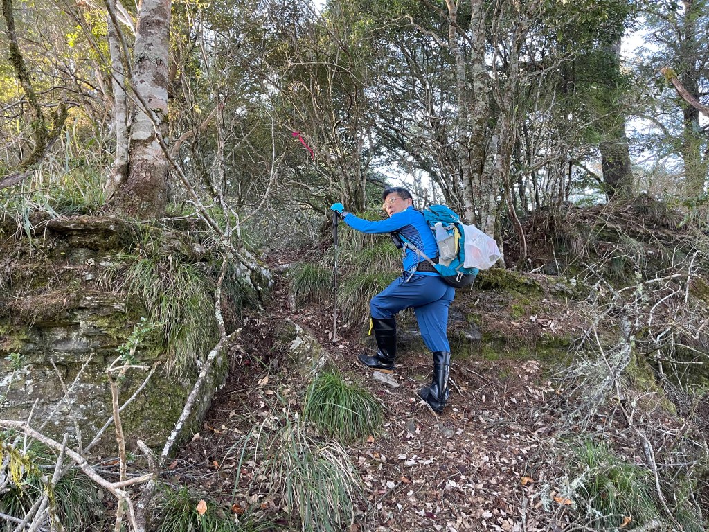 此時Leo已經等了我們快40分鐘,Smile與我,在此進食午餐,這時Leo想在天黑前好好的拍楓葉,因此就跟我們道別,先往霞喀羅古道衝了🏃🏻!我們在基那吉山也休息了30分鐘,在下午1:30左右,也開始往布奴加里山方向走,這一段的距離有4.5K,此段路徑要分兩部分說明: