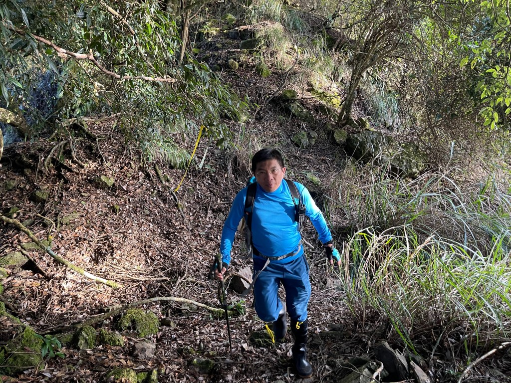 接著在要1.3K的距離由H1910m陡上至H2260m,陡上到一半後,Leo就說他要先衝到養老山去煮茶給我們喝?哈哈😆,相信是因為等到受不了了!爾後抵達養老山,喝了熱騰騰的茶,溫暖了冰凍的手及心。