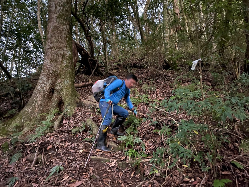 好不容易在下午四點多抵達布奴加里山,這時已經有摸黑的打算,Smile還是秉持著她一貫的作風,一定要把整個路徑記錄清楚拍攝完整。哎!今天又得要摸黑了,這時Leo回報已經在霞喀羅古道上,相信他下午五點左右就可以出養老步道口。