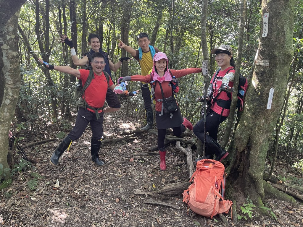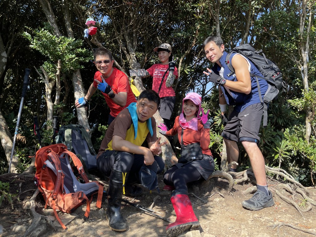 上圖:我們幾位全都是在北插天山結緣的!嘉鴻、小宋、Smile與我(Gosen)是4年前在北插天山認識的,當時,Smile與我(Gosen)第一次爬北插,也沒帶頭登,嘉鴻二話不說,馬上丟一個給我們兩個,讓我們在走回到東眼山的過程中得到了僅有的光明!妙妙及采庭則是2年前攀登時一見如故,開啟了不少共同爬山的經歷!