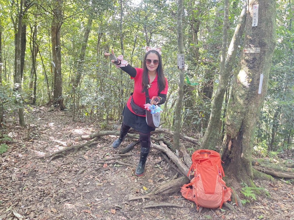 上圖:照片中是由東眼山林道走到底後,就會接上東滿步道0K 的起點處。由此要走4.44K,因此由東眼山走到東滿步道4.44K處需要3K+4.44K=7.44K,這一條路線最長,進入北插天山前的路徑條件都非常好走。這是2018.11.07當時的照片,哈!我還穿牛仔褲登山勒!也是在這一天認識了個性大剌剌的嘉鴻。