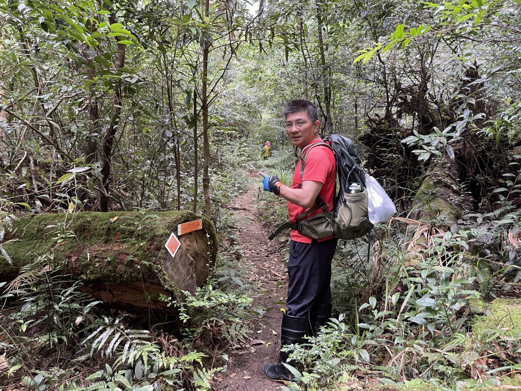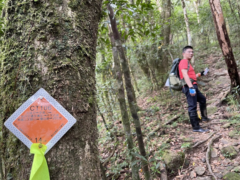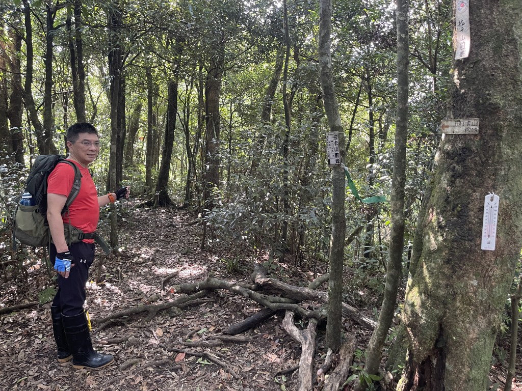 今天,我們由滿月圓國家森林遊樂區 起登,將汽車停在滿月圓第四停車場後,回走50m左轉進入天德巷,開始了今天的旅程,原預估2小時可以走到拉卡山,但之前因為腳傷目前仍在復健過程的Smile,今天一路唉唉叫,走走停停,大伙都是一溜煙就不見人影,然後在某一個特定點再等我(Gosen)及Smile的到來,結果走到拉卡山用了3個小時,我可以感受到大伙的無奈,因為只剩我一人在等待,這一段路徑雖然陡,但就覺得自己(Gosen)可以跑,可是得,等.等.等.等。