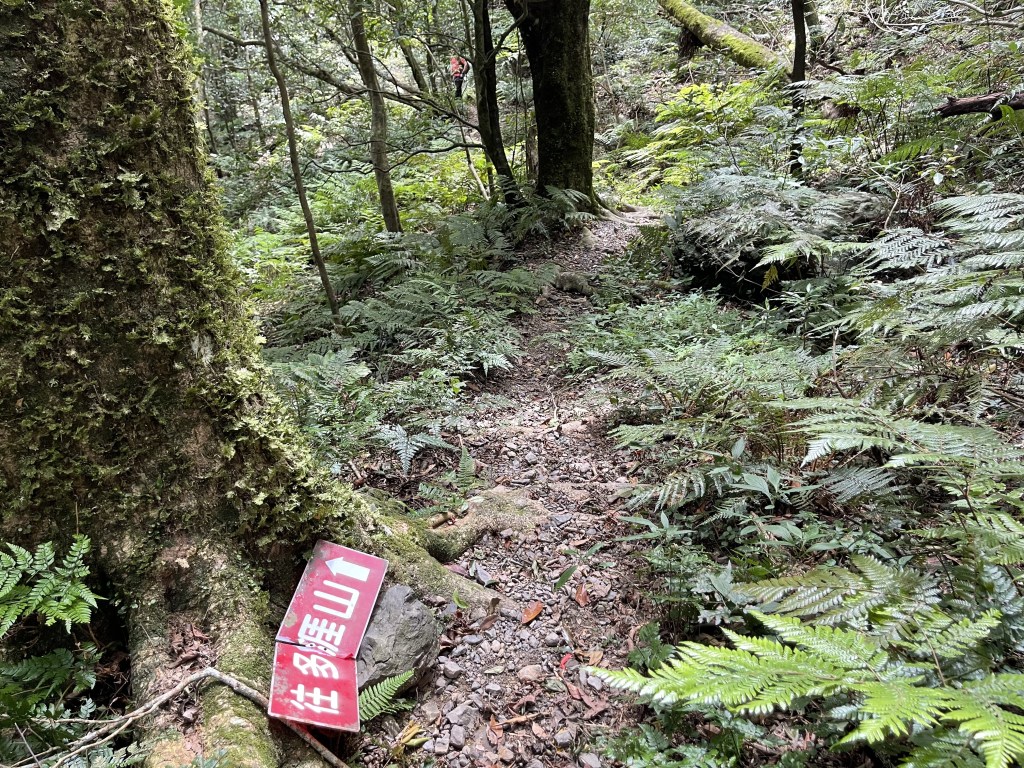 目前自20220501 後,到木屋遺址後,必須走水源地方向走到四岔路口,或是由赫威水源岔走到四岔路口,再接上岩戶分遣所路線上北插天山。
