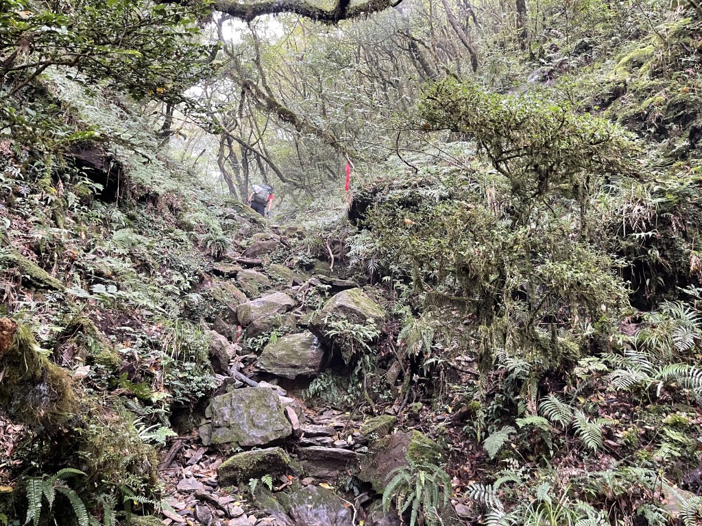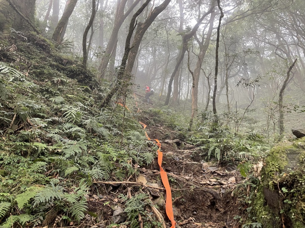 上圖:一往下走,發現沿路布條頗多且路徑清楚,這讓大伙都安心了不少。