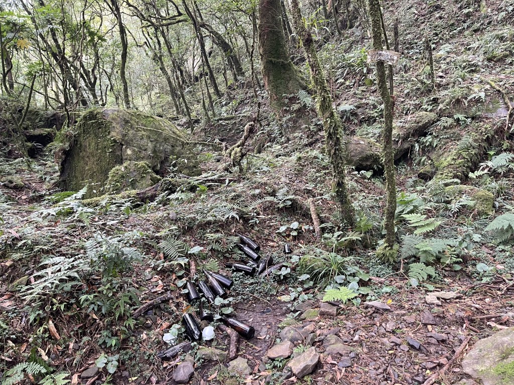 上圖:大門牙路徑右側平台有不少的歷史酒瓶,這裡就是岩戶分遣所遺跡。