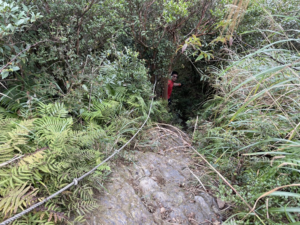影片:在芒草區內陡下,一開始還有繩索,後面就不再有繩索,另外,芒草下的路徑居然有些部份有大洞,真是要小心的一段。Smile太盡責了,每一路段的拍照或攝影都不放過,一直擔心她沒有跟上我們。