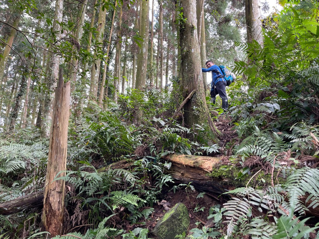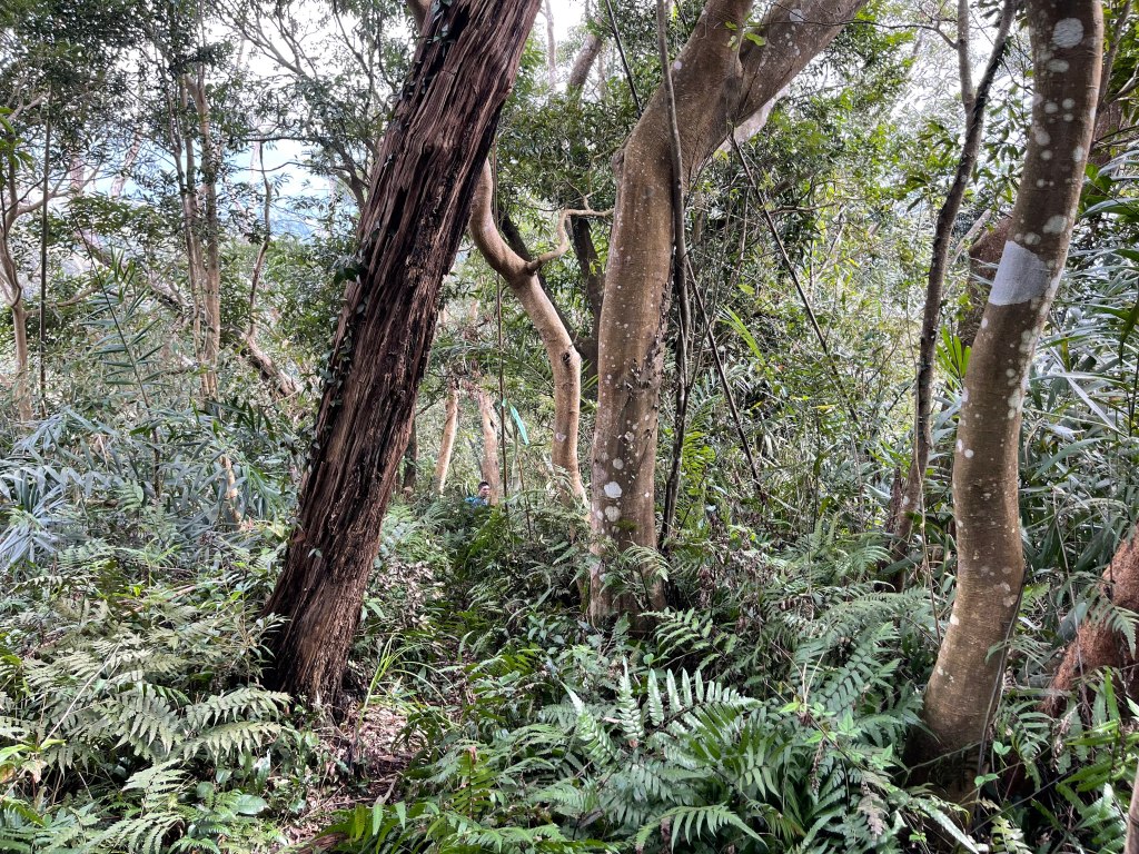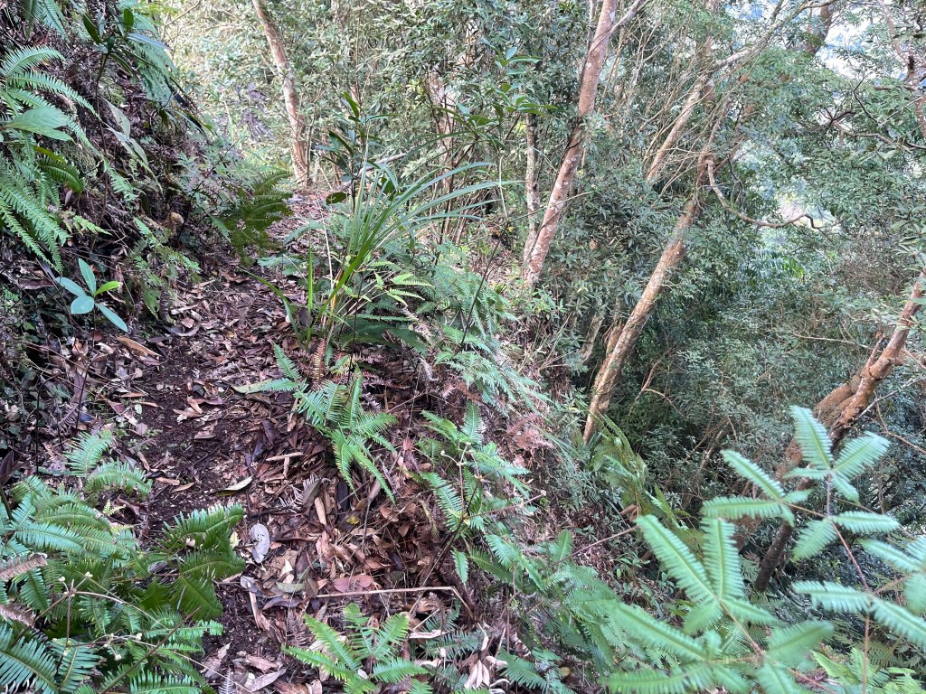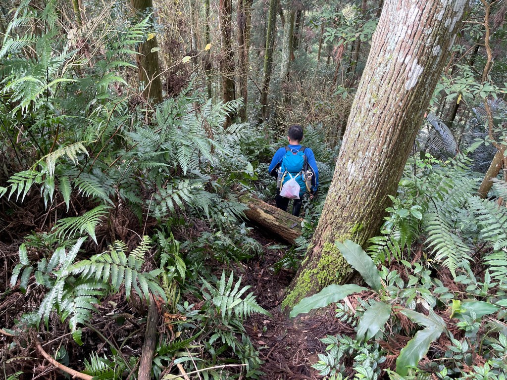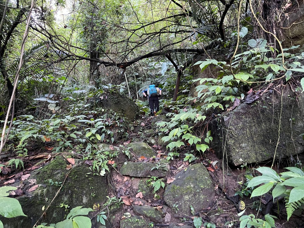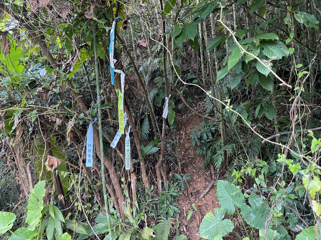 (3)走稜線路徑過程中,有不少路段都是走在瘦稜上,兩邊都有樹木雜草等植物,看似很安全卻暗藏危機,如果仔細看,會發現有些路段,其實有一邊是深不見底的斷崖,只是因為有樹木植披,會誤以為沒有危險。