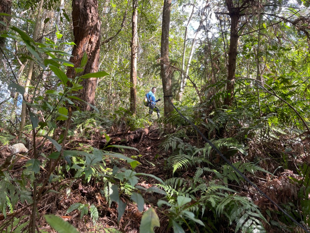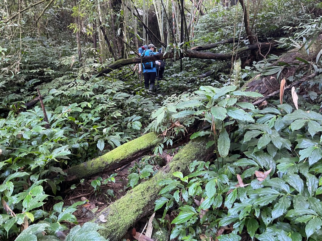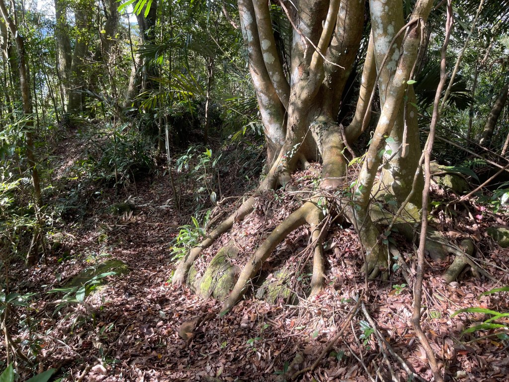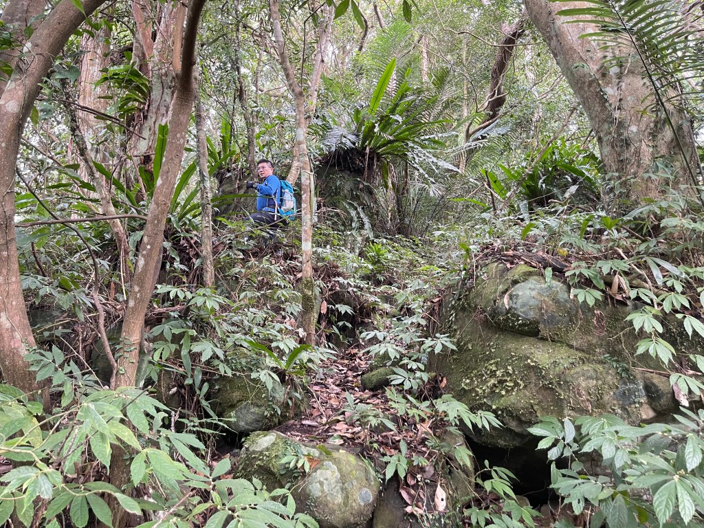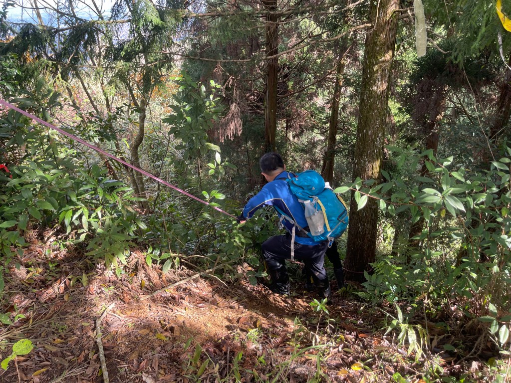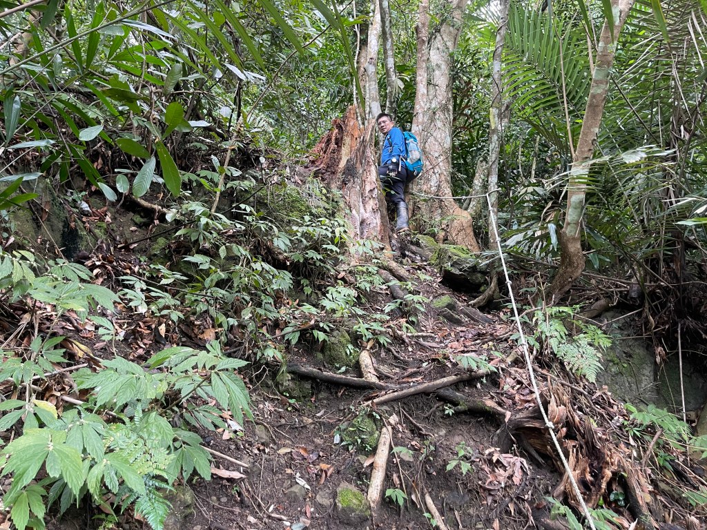(3)走稜線路徑過程中,有不少路段都是走在瘦稜上,兩邊都有樹木雜草等植物,看似很安全卻暗藏危機,如果仔細看,會發現有些路段,其實有一邊是深不見底的斷崖,只是因為有樹木植披,會誤以為沒有危險。
