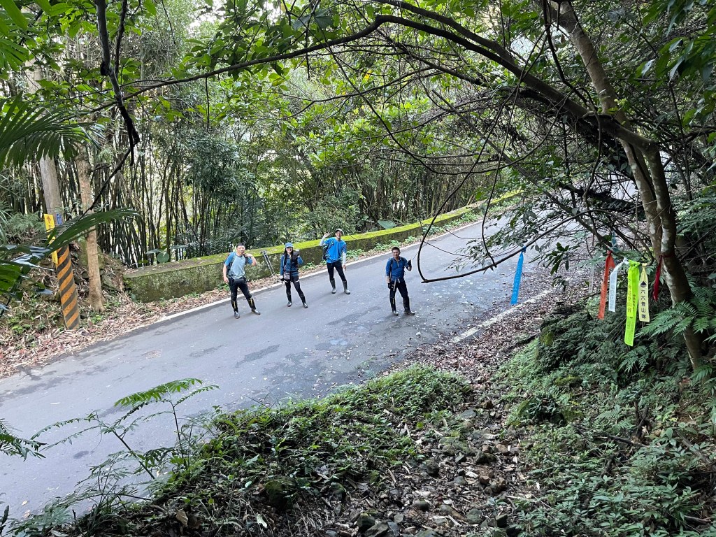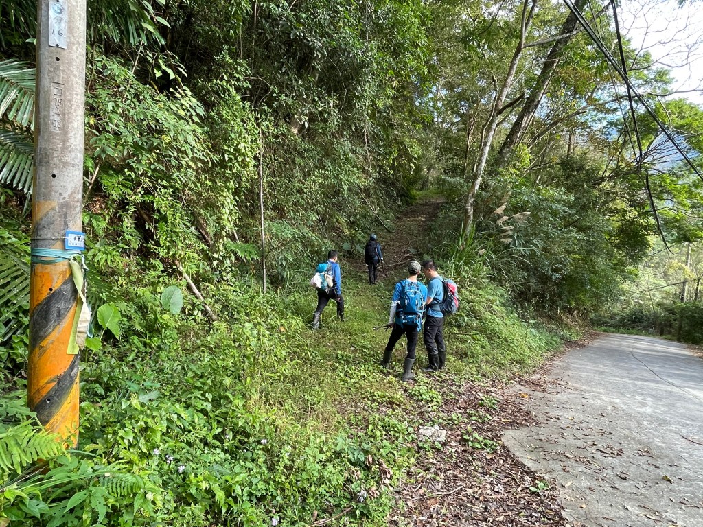 (5)從六畜山開始下山,循著嘉樂村村落道路需要走4.5K,才能接上120縣道,而我們在這之間還順登嘉樂山,這往返距離需要再加上1.2K,因此從六畜山到120縣道,距離共5.7K,但極好走!