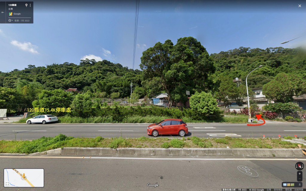 如果朋友們也要走相同的路線,請朋友們直接由Google導航至120縣道15.4K處,如下圖所示(點按圖片亦可進入導航畫面),