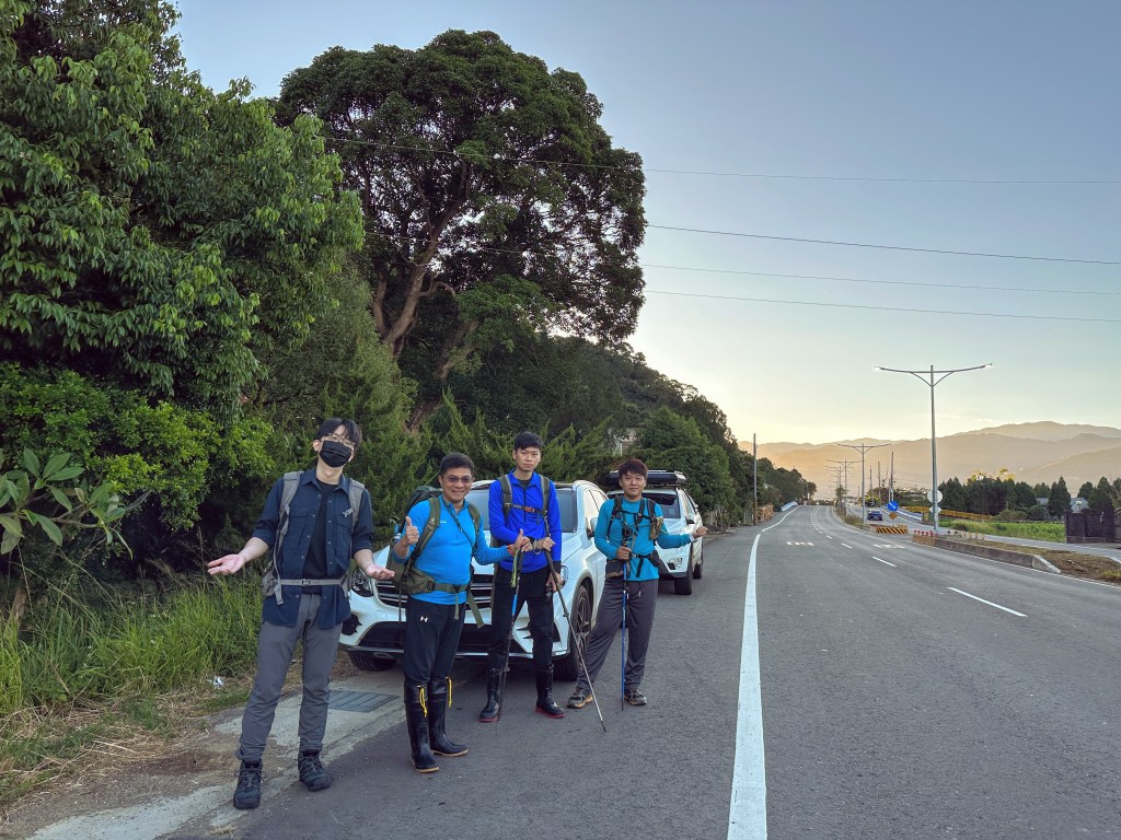 清晨Tim與我(Gosen)載著伙伴們,分別由鶯歌與永和出發,在早上6點多時分別抵達120縣道15.4K處,也就是三爺坑山登山口前的路邊停好車。在6點半時開始起登,左轉進入芎林鄉120縣道480號的產業道路,一進入20m的距離立即往右轉即開始了今天的行程。