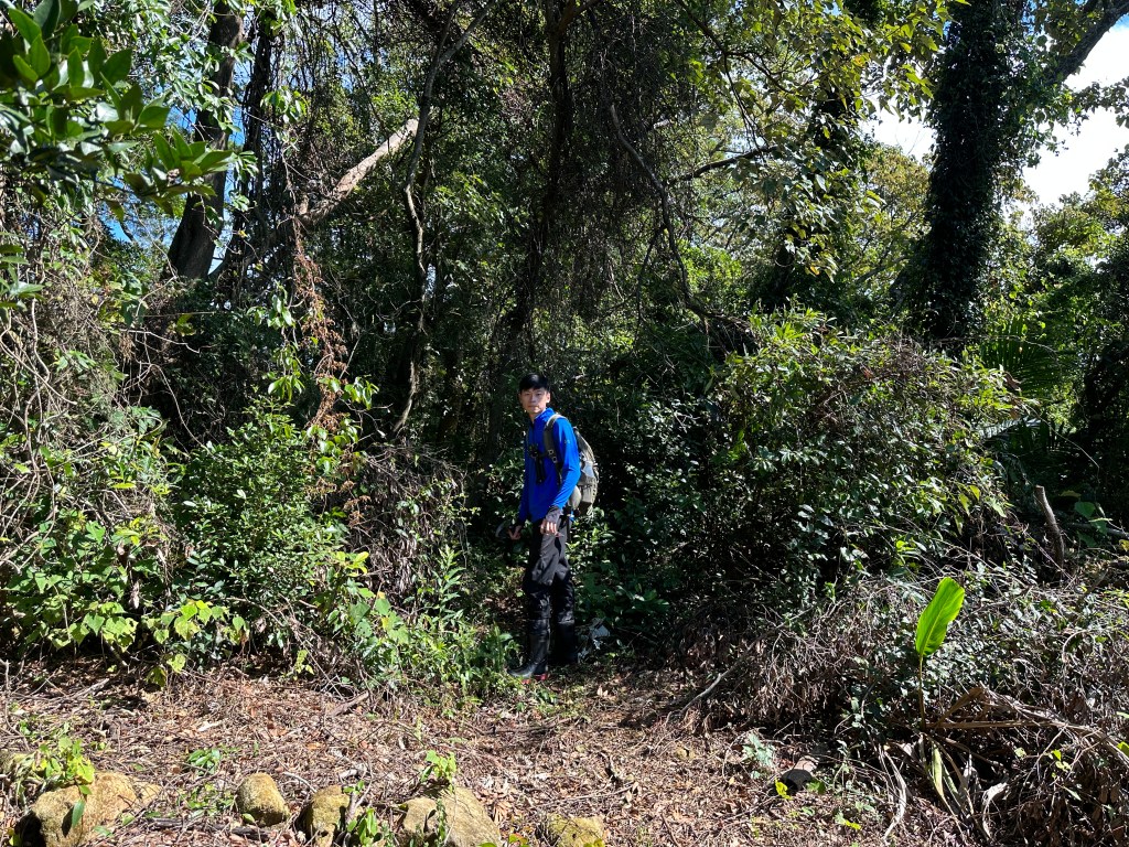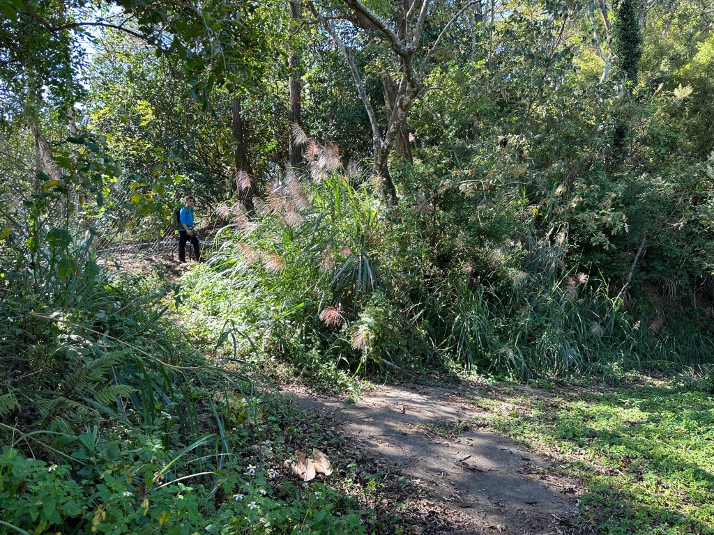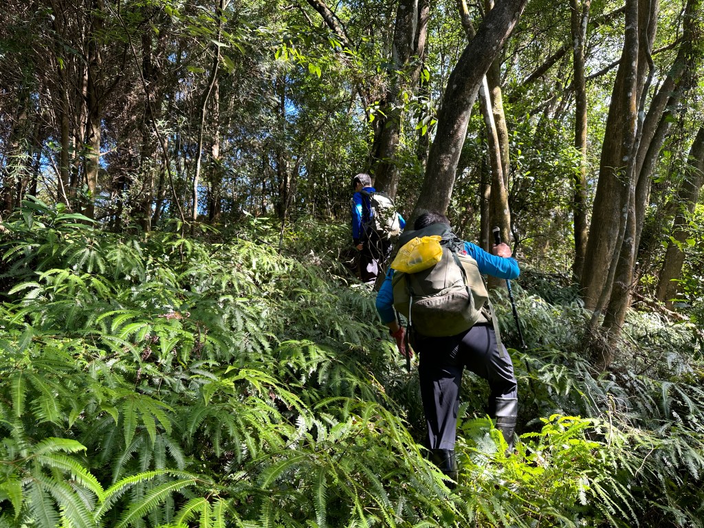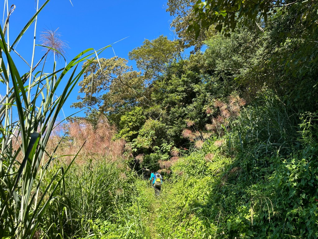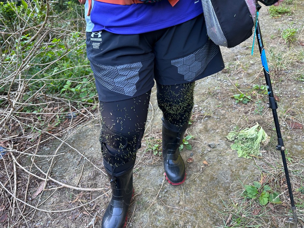 繼續往龜殼山前進,在這段過程中的路徑上,佈滿了淡竹葉還有鬼針草,鬼針草與淡竹葉這些太會扎人了,尤其是淡竹葉,根本都是倒勾,大伙都被刺到褲子上到處都是,而且還很難拔出來!