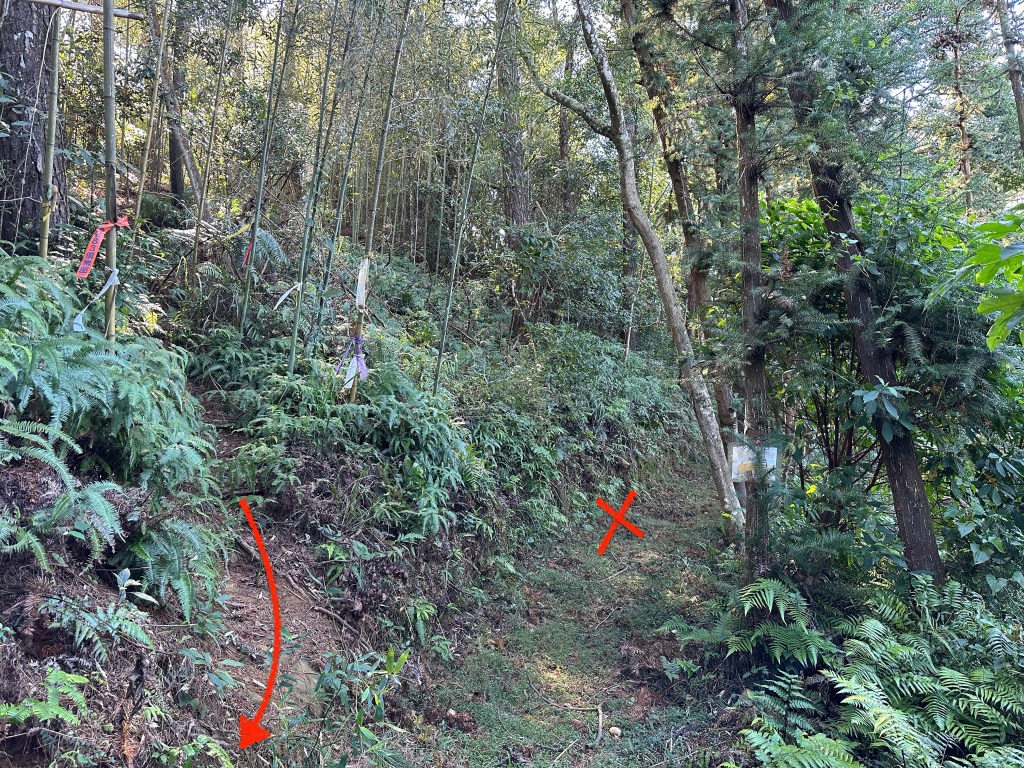 兩座山之間的路徑會穿越竹26鄉道,即可由竹26鄉道沿路下山。