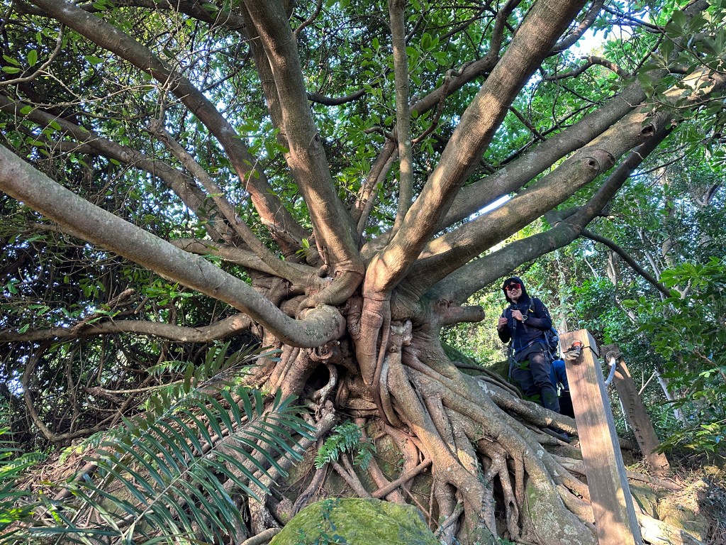 上圖:福德坑山,又稱為鳶山,這今天整日最高之處,是小百岳排名019。David,你的表情,是在練鶴拳嗎?