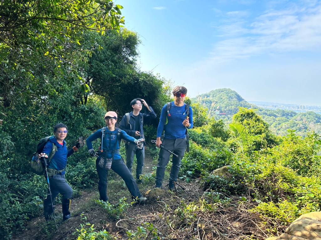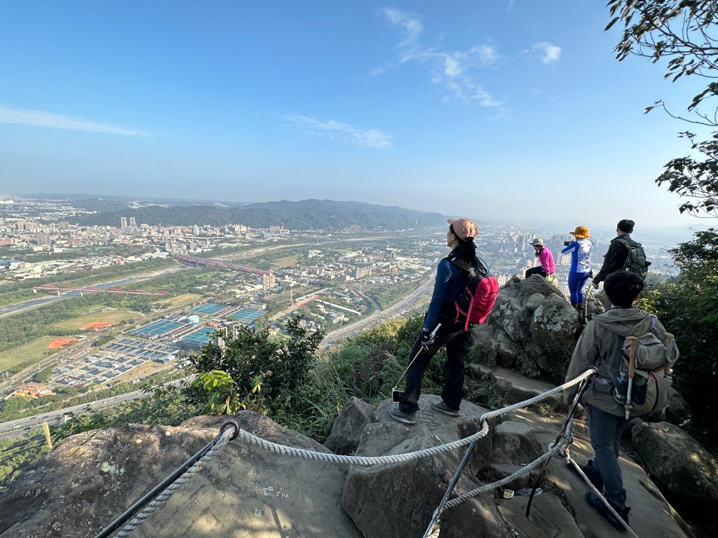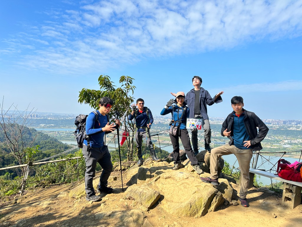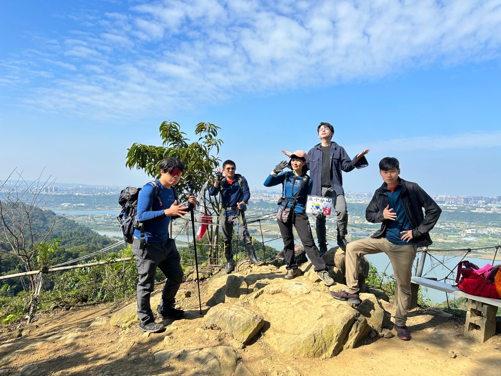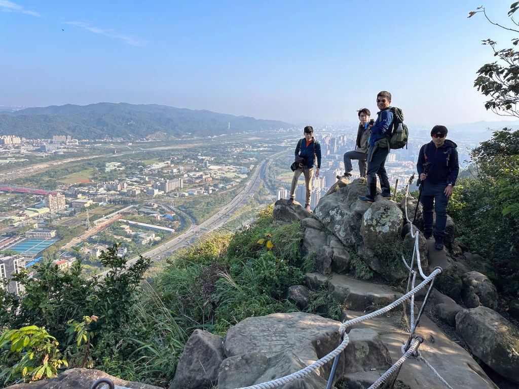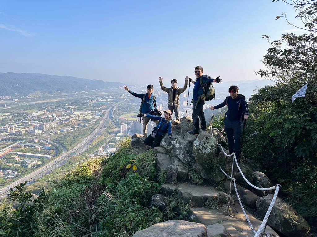 上圖:鳶山岩,在此可以俯瞰三峽鶯歌,是展望極佳之處。左起:Steven、采庭、David、我(Gosen)、Smile、小六。