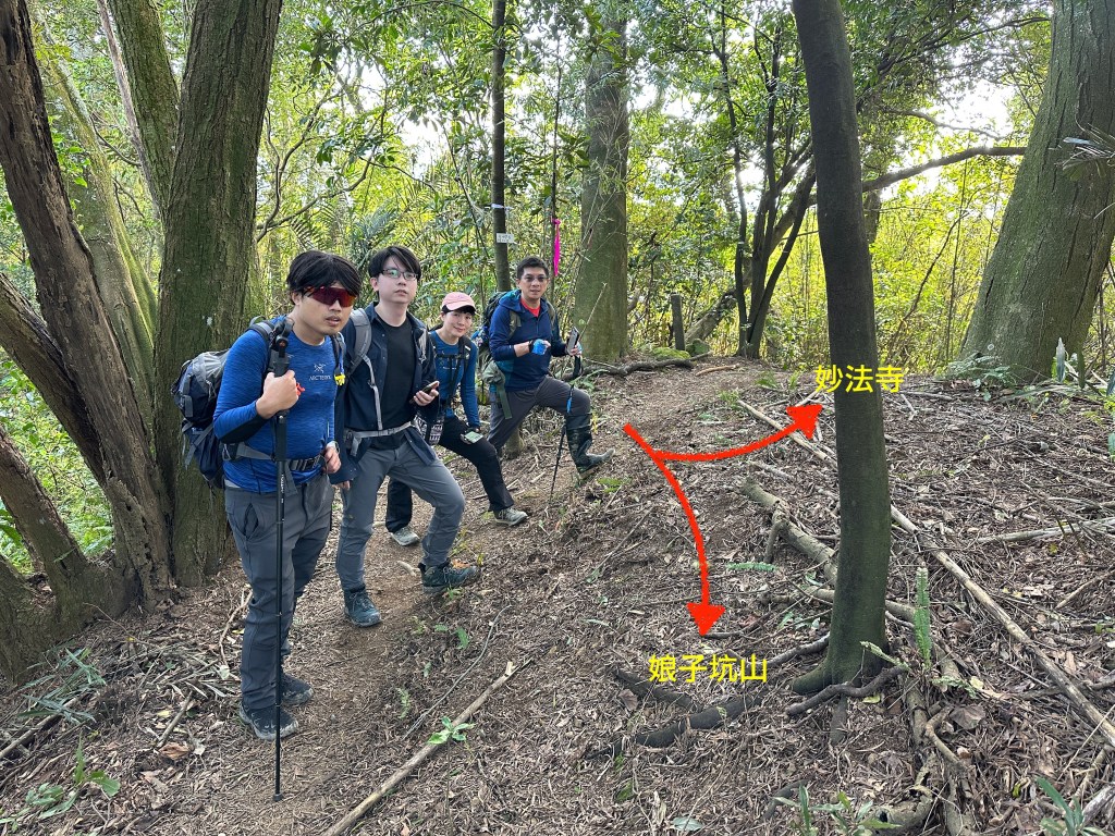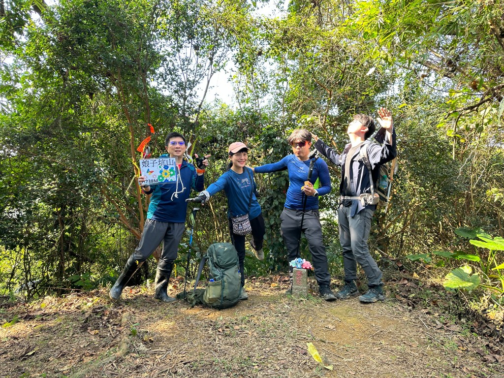 再來,就是要由烏塗窟山往娘子坑山走,距離為2.2K,這一段,Smile走得更快了些,只用了40分鐘就抵達。當然,也因為這一段的路徑條件都很好,起伏不大所致。娘子坑山,今天完成第七峰了。