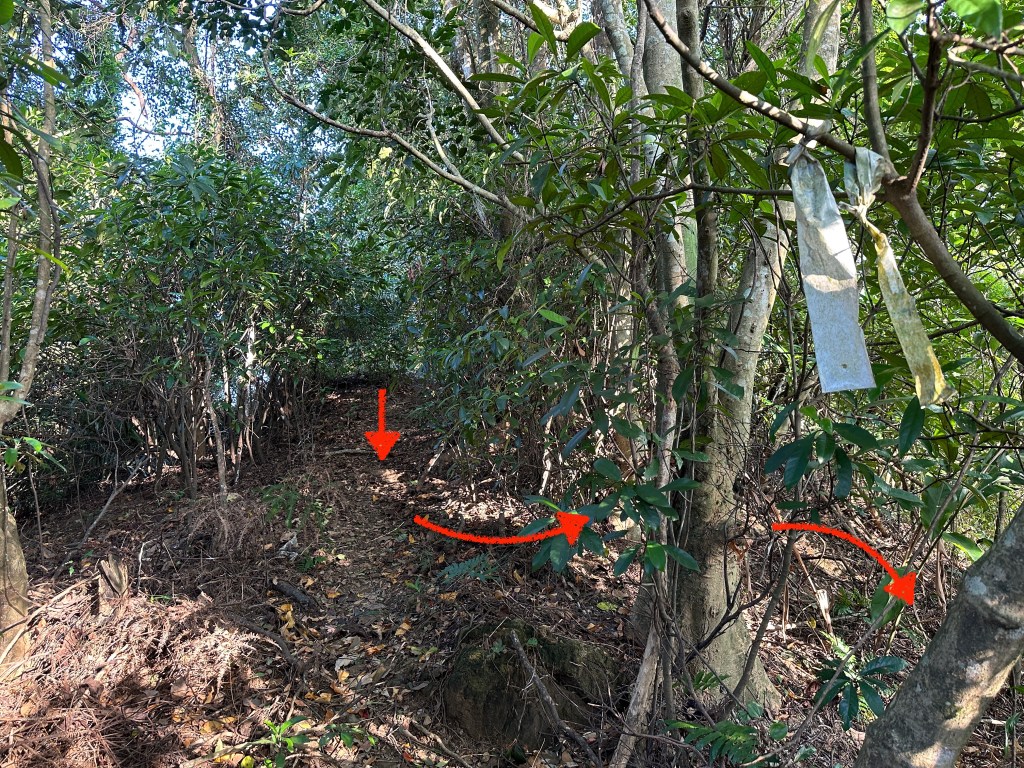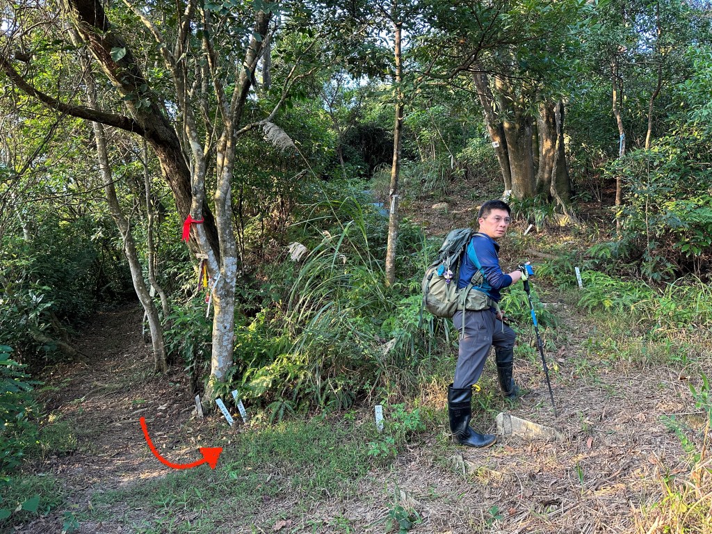 上圖:再往前走100m,就會到達這個三岔路口,繼續往前直走,可以直下而接上台3線。我們要往左陡上,先去小石牛,再去二鬮山。16:32