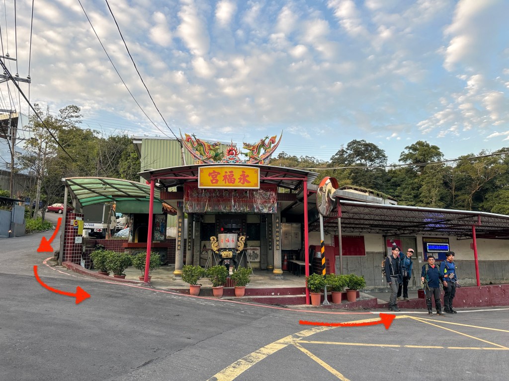 影片:影片中可以看到這裡就有一個登山口,但我們想要先登上鳶尾山,因此先橫渡空地後,往三合院古厝方向走,由另一個登山口上去。
