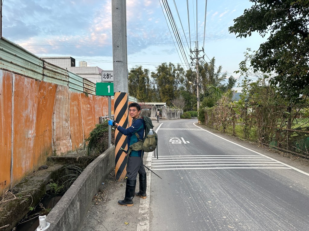 早上大伙陸續將車開到三峽大同路,在大同路286巷周遭自行找路邊停車位停車。在早上7點18分開始今天的行程,停車處左側就有鳶尾山的登山口,但若由此登山口直接進入鳶山,就會閃過鳶尾山,因此,我們往右岔出去走不到200m,就會抵另一個鳶尾山登山口。