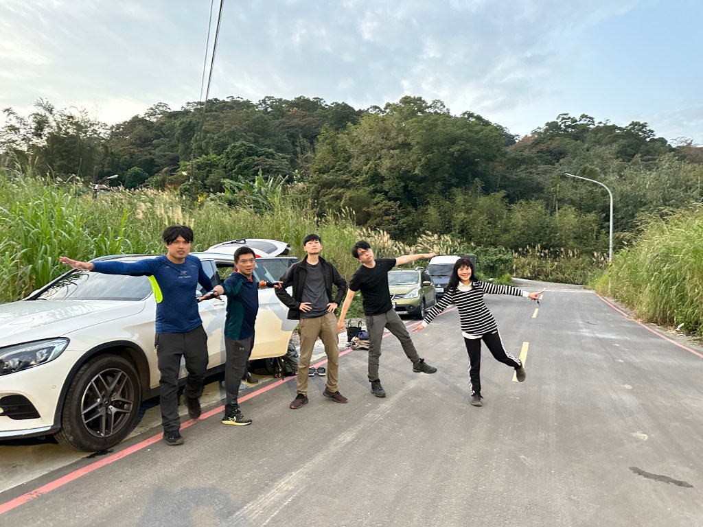 上圖:將汽車停在三峽大同路286巷的路邊。左起:David、Steven、我(Gosen)、采庭、小六。嘿!David,現在才剛起登,就已經在搞怪了?07:18