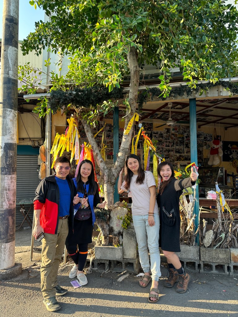 前一天,我們由北台灣開車下來,要直接進駐梅山青年活動中心,結果在途中,接到電話說明Smile護照辦理所用的照片規格不正確,要重拍,因此,我們一行人就直接選擇到玉井吃午餐順便拍照,沒有想到因為下午才到,大半的餐廳都在休息中,逛來逛去,居然走了1K才看到一家玉井二空涼麵 ,沒有想到老闆娘是熱情的山友!店裡面有超級多各登山隊伍的登山布條,門口還有一座三角點!真是年輕有趣的老闆娘,我稱可愛的老闆娘是妹妹!