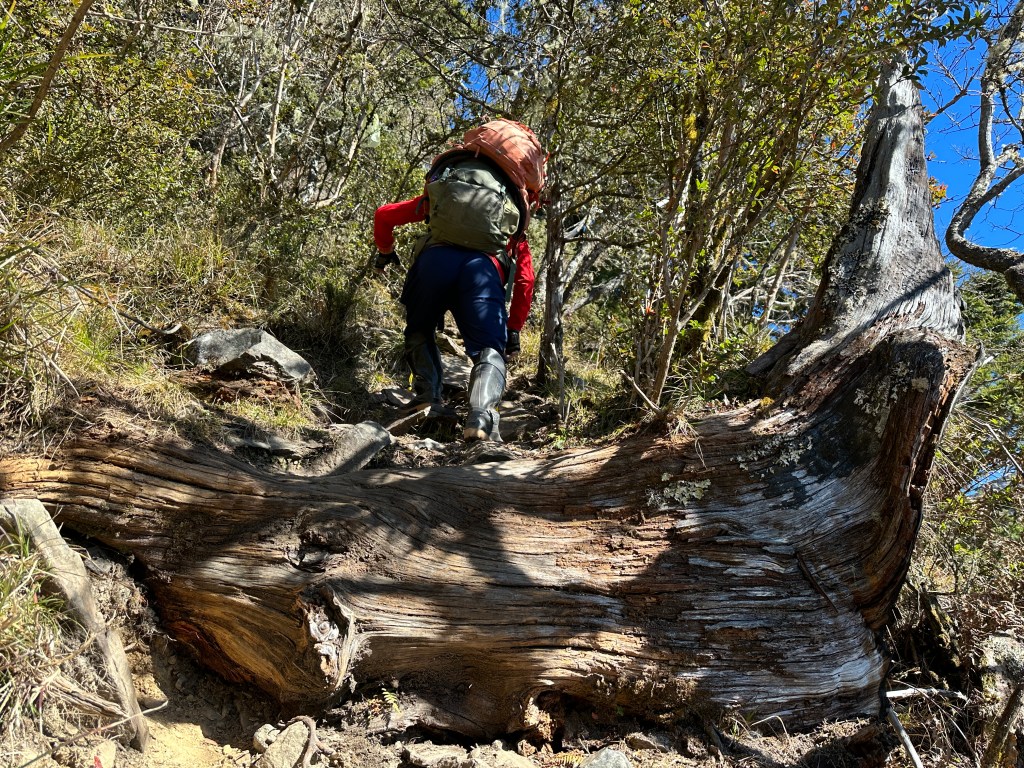 上圖:跨上倒木。09:55