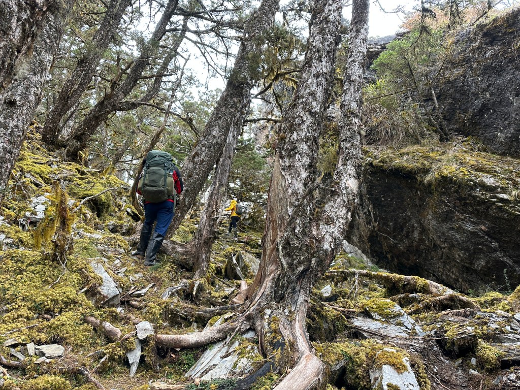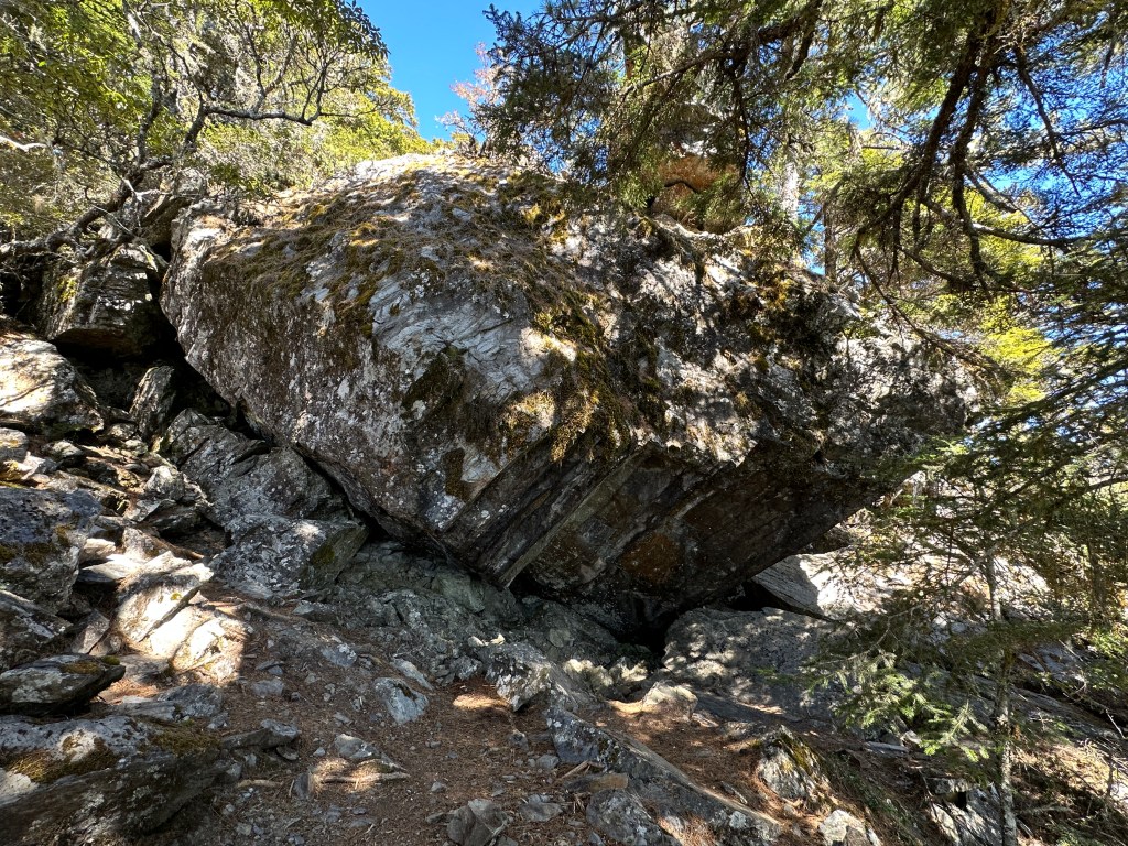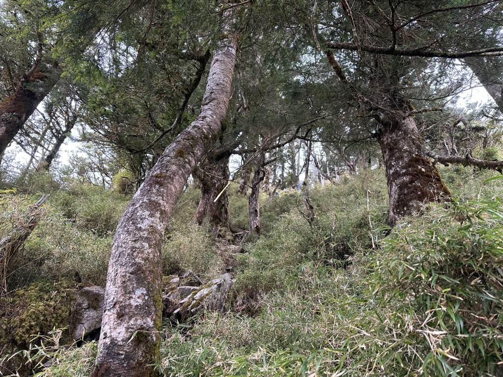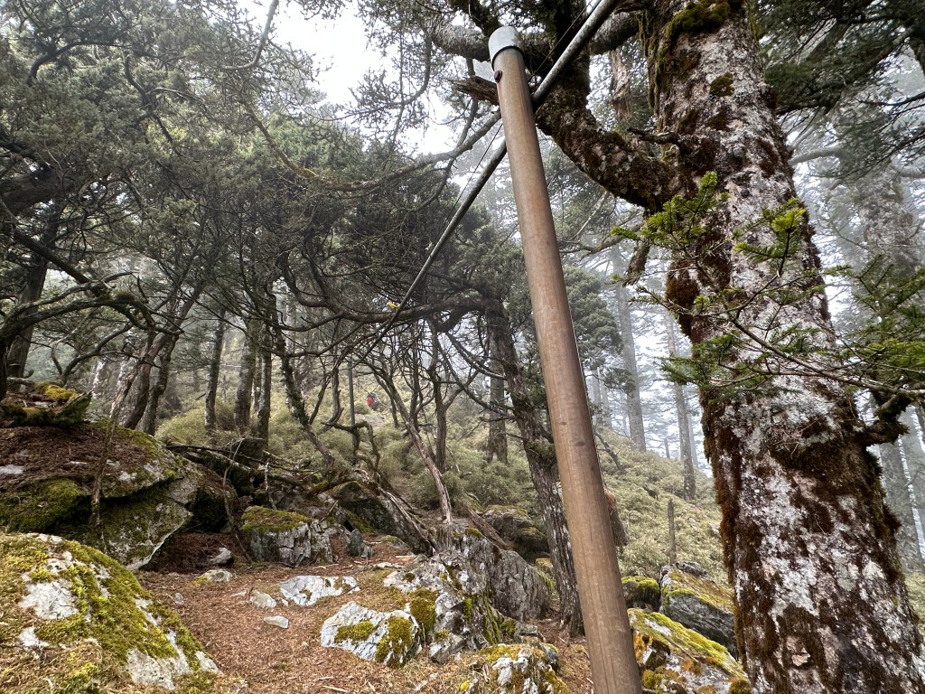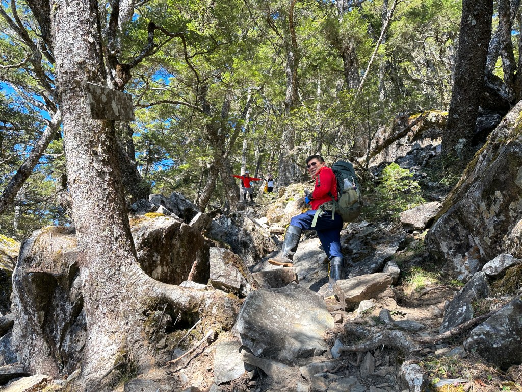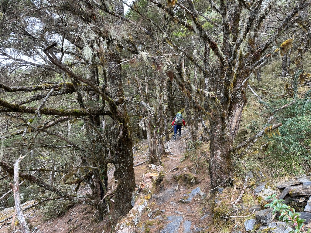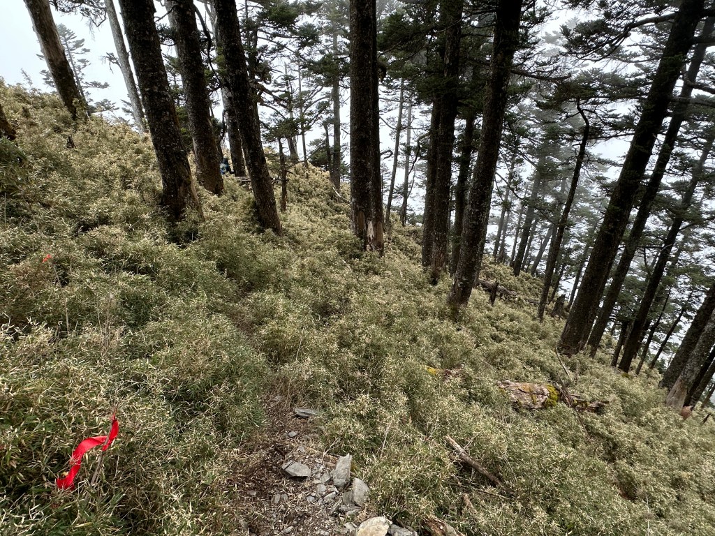 上圖:來到大倒木後,就進入石瀑區,而且隨著海拔愈高,高聳的樹木反而會越來越少。非常的陡啊!突然想起了,白姑大山、玉山前峰登頂前的石瀑區。