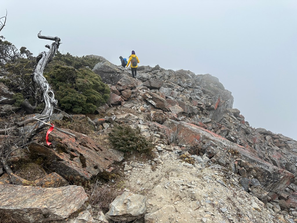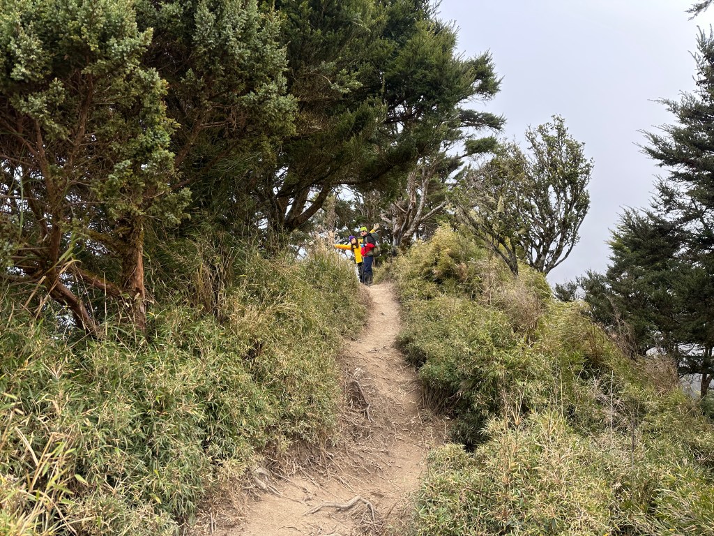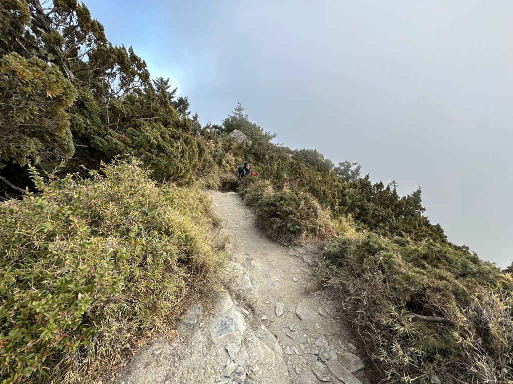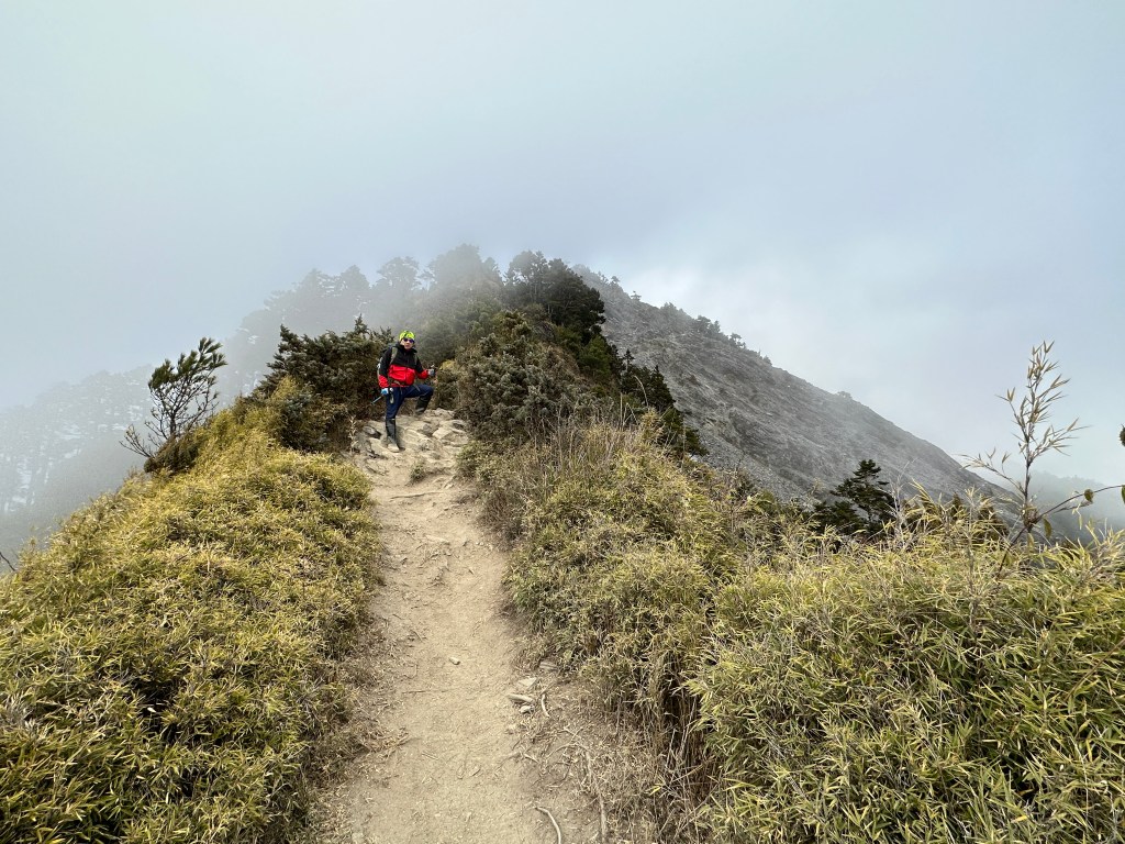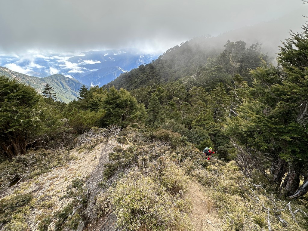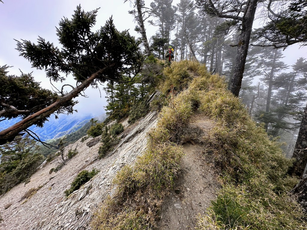 上圖:陡上到稜線上,其實我在稜線上正在等待Smile。15:07