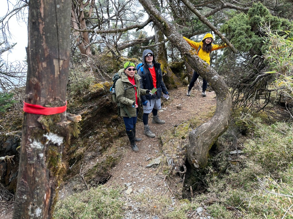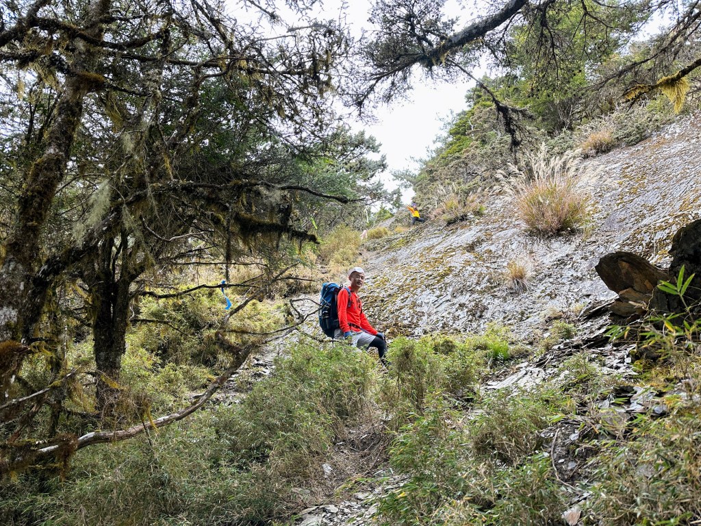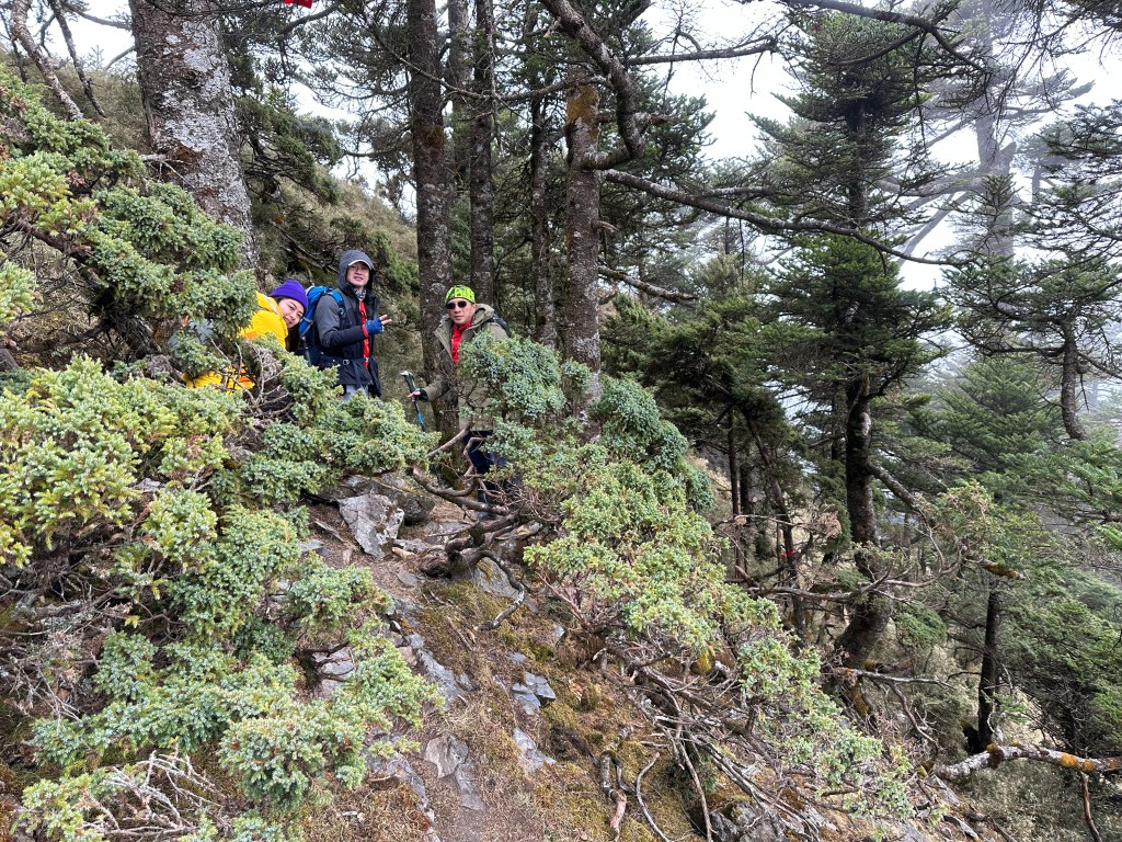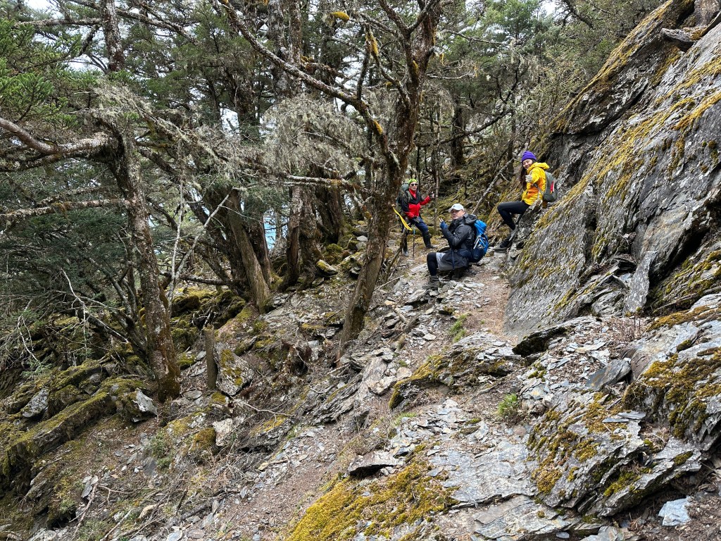 上圖:走到這一段,可以感受到四個人都在走走停停,最大的問題,就是氣溫很低,很耗體能。其實,路徑雖陡上但不算難走。14:56