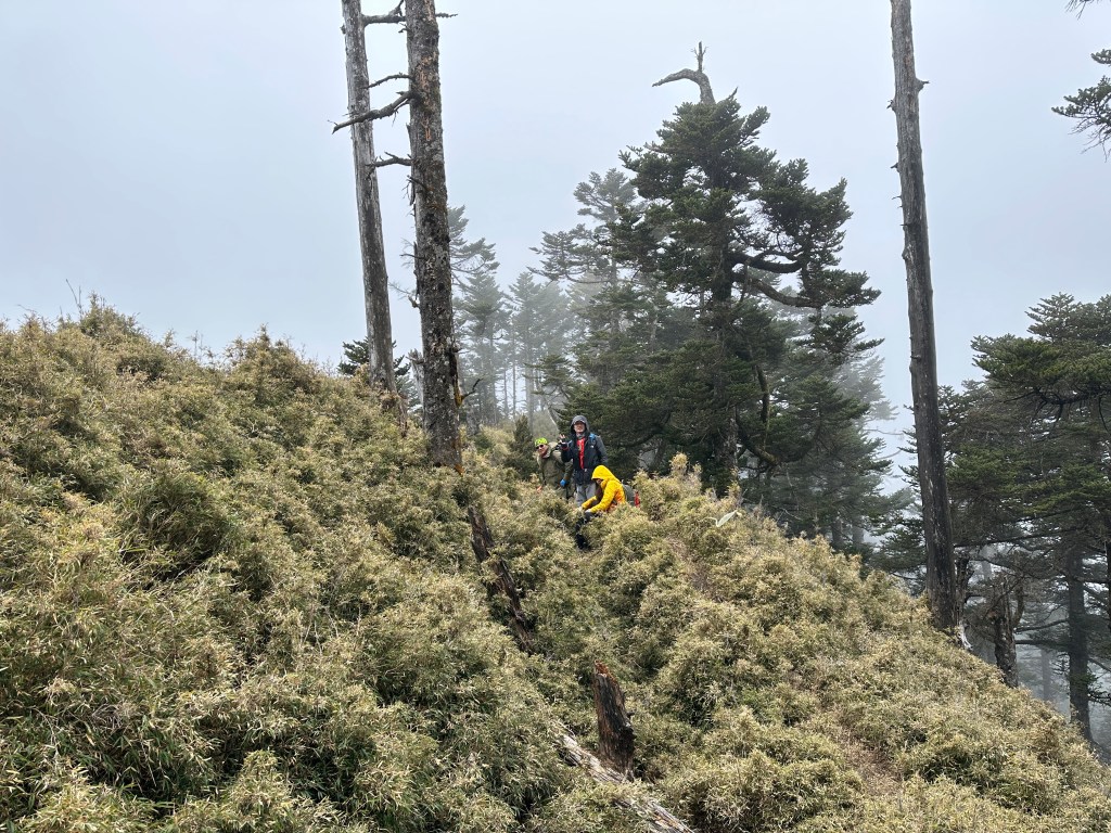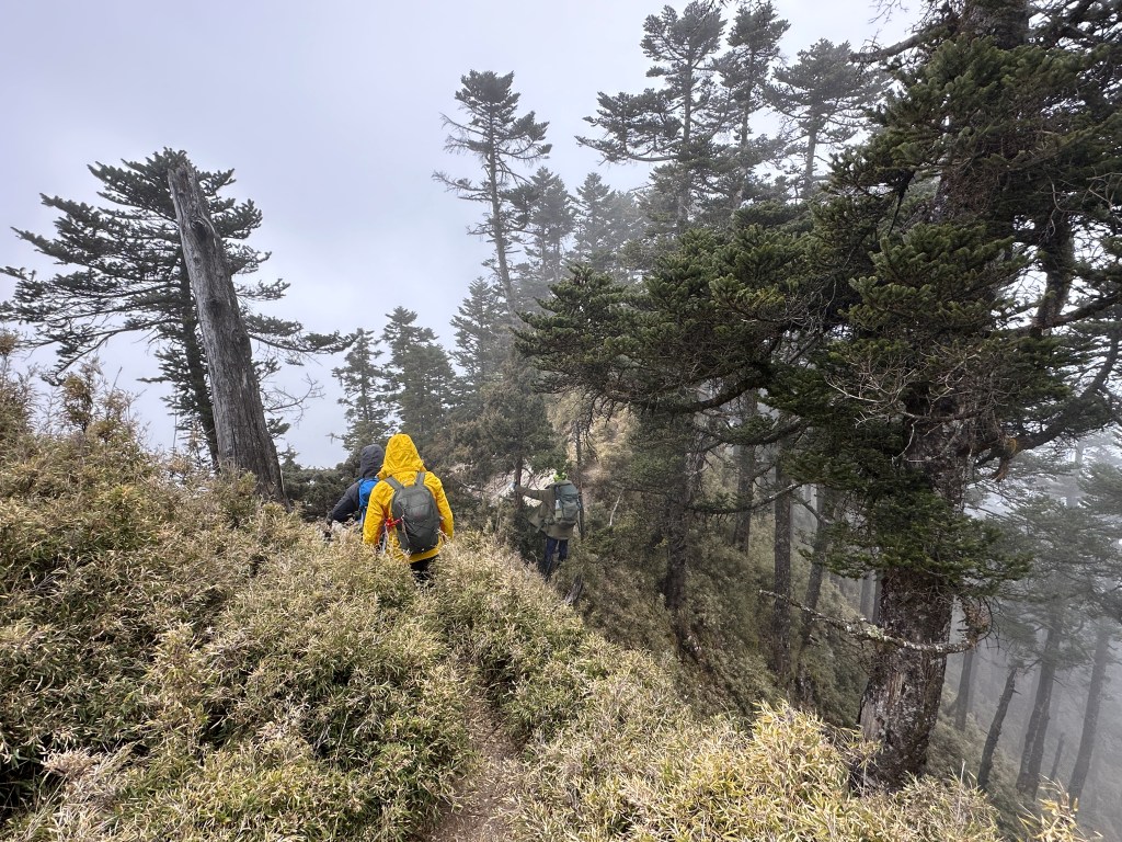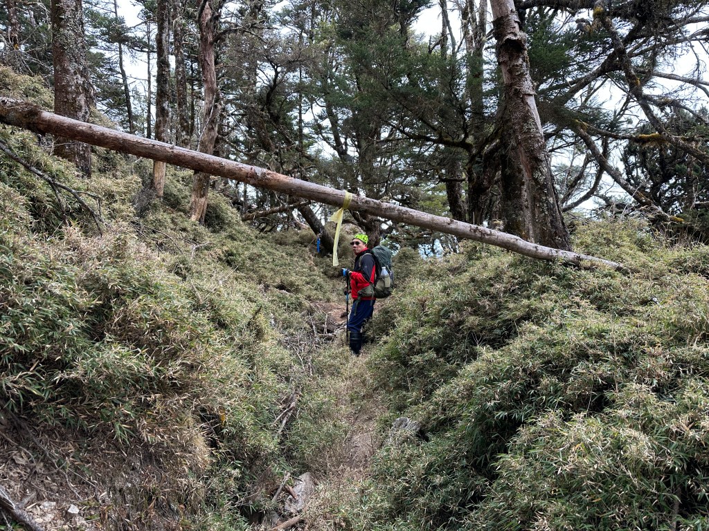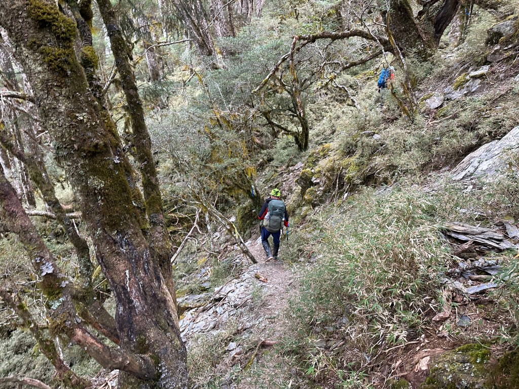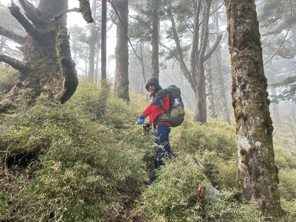 上圖:走到這一段,可以感受到四個人都在走走停停,最大的問題,就是氣溫很低,很耗體能。其實,路徑雖陡上但不算難走。14:56