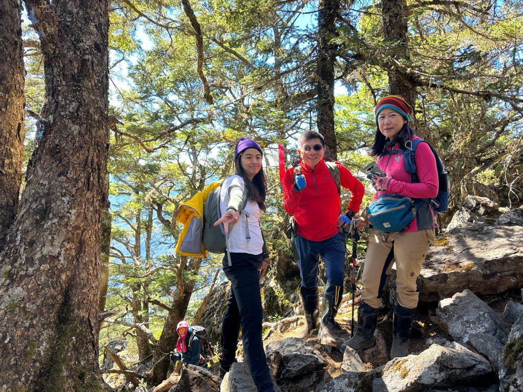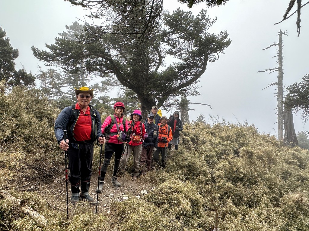 上圖:請山友幫我們四人拍照。左起:楊咩咩、Smile、Ken與我(Gosen)。