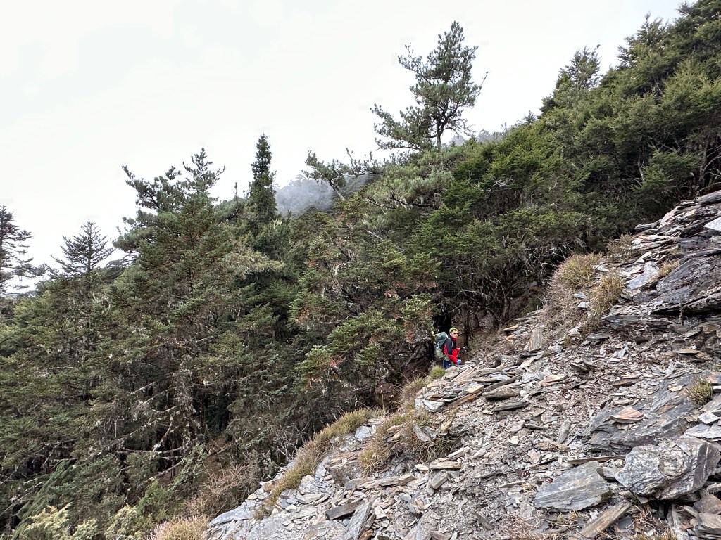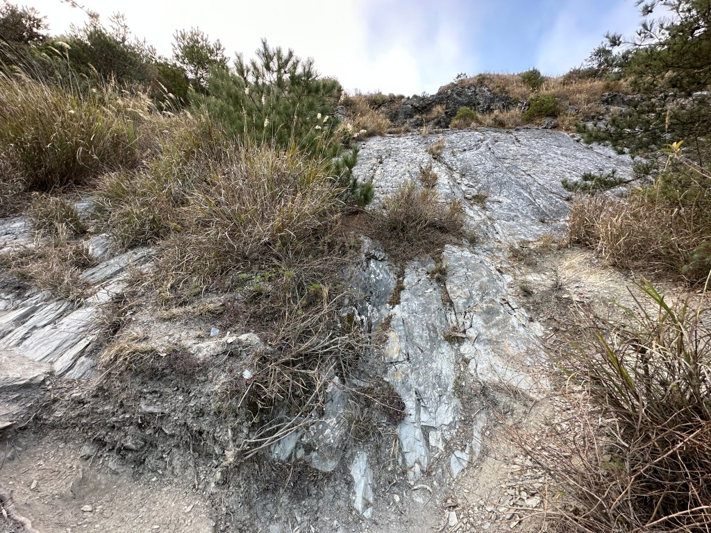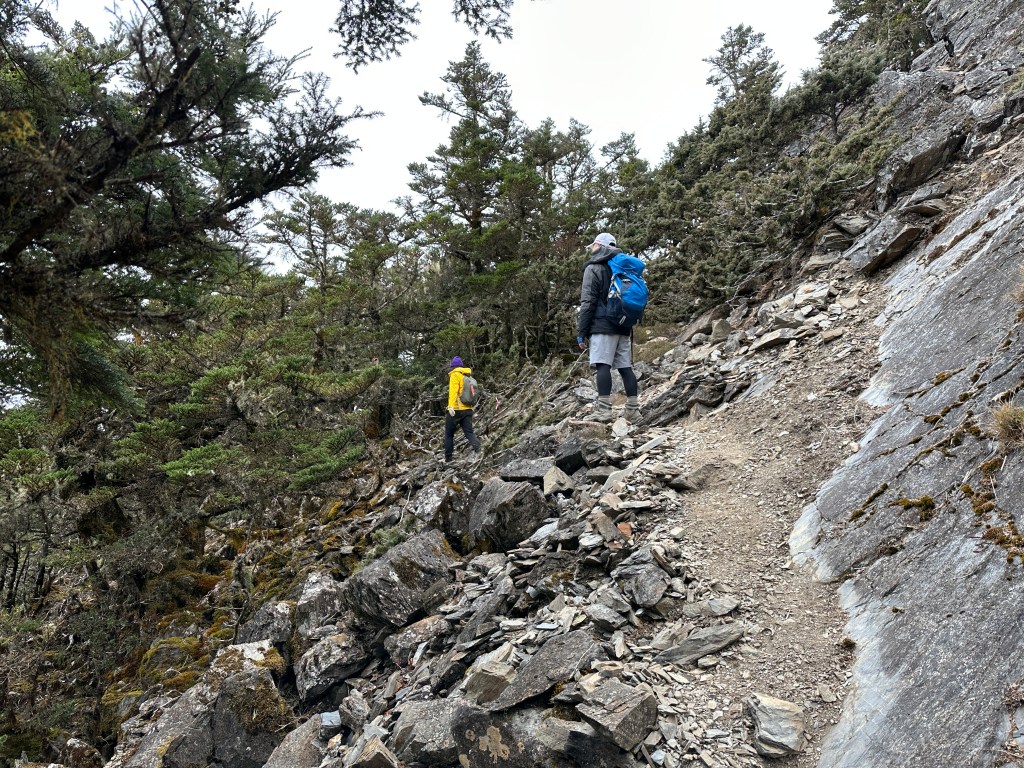 上圖:由剛才的岩壁陡上且往右側上來後,路徑轉為比較平緩。
