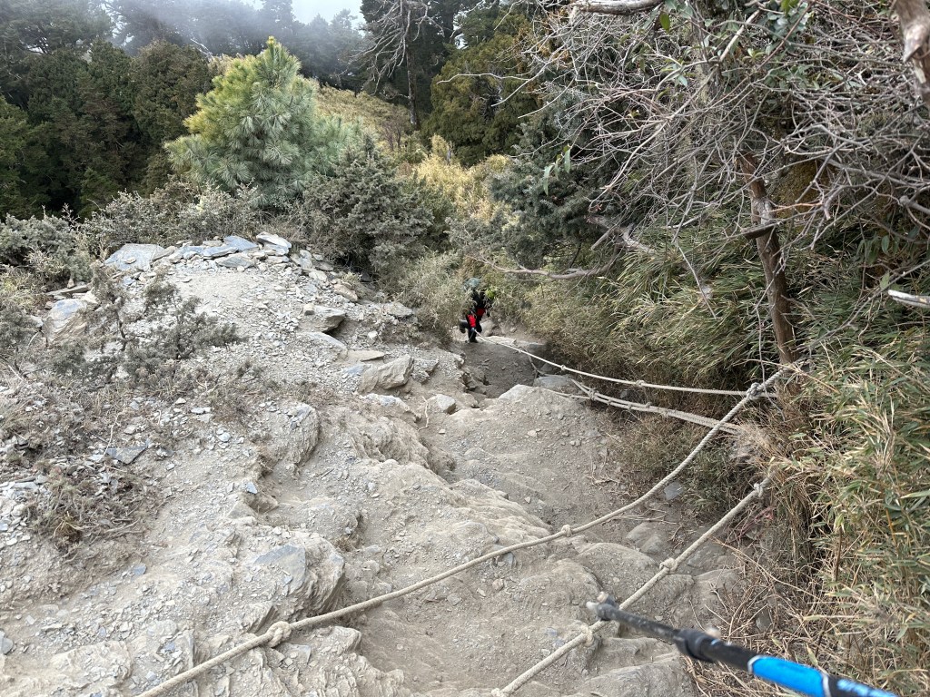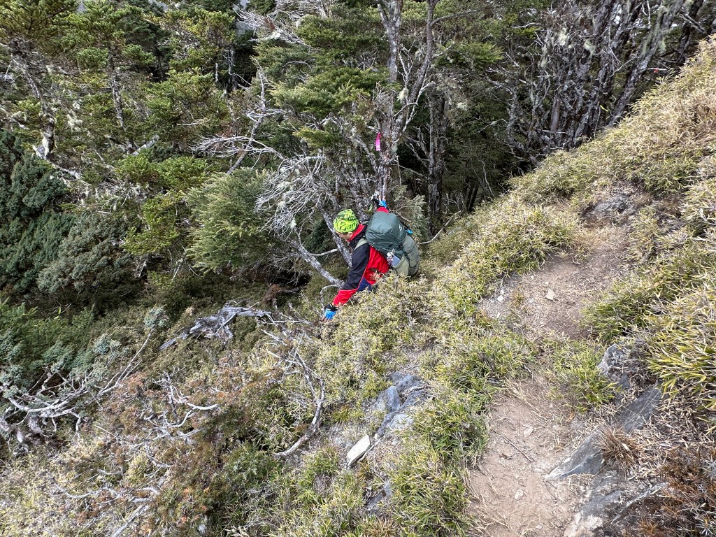 影片:進入拉繩路段,看得出來一下子就要陡下不少。15:59