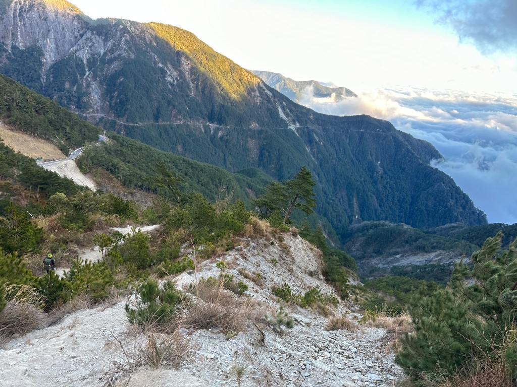 上圖:持續陡下中,漫步雲海上。