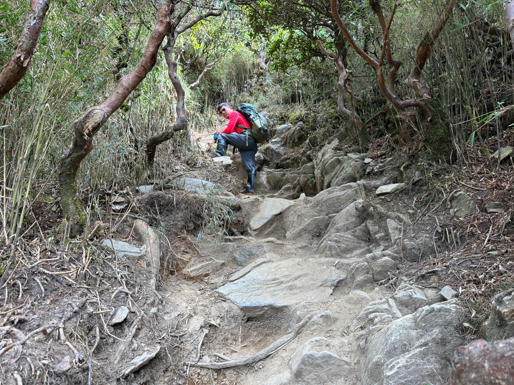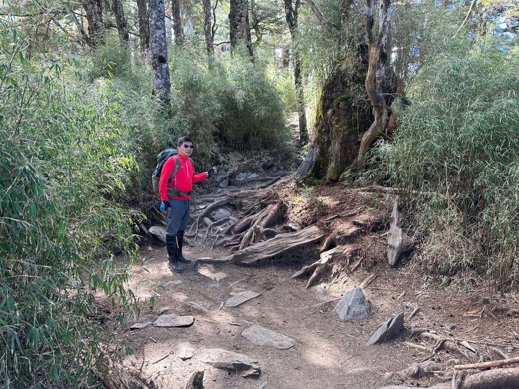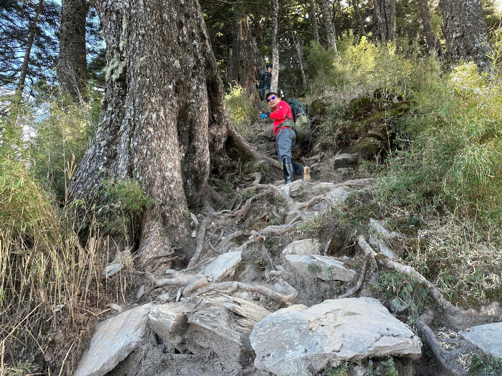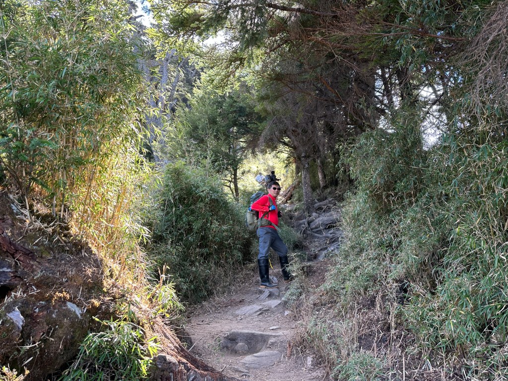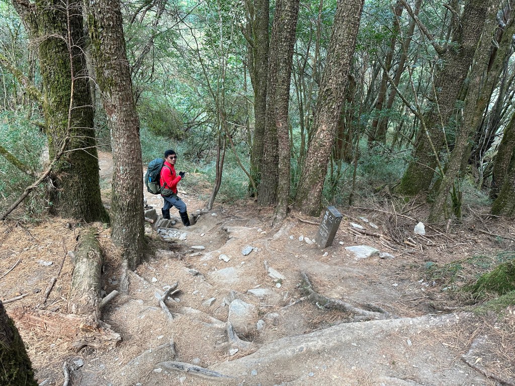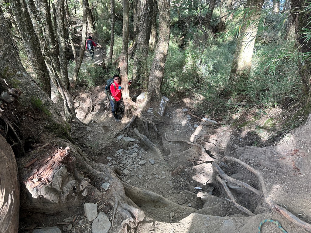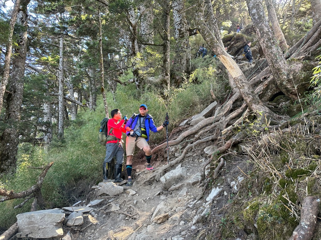 今天,走得超慢,因為,已經是第三天爬山,經歷過前一天關山的單攻,Smile雙膝更是不舒服,所以,我們一路不趕時間,慢慢的走。再加上,由0.7K里程碑開始,就一路遇到不少的山友給我們打氣,要我們持續寫出詳實的山徑記錄。甚至,還遇到伙伴:阿福!帶著一副超炫超大的太陽眼鏡,然後,說:Gosen!你看得出我是誰嗎?哈!眼鏡那麼大,臉都遮住了,怎麼看得出?而且,還穿著一雙母子鱷魚的夾角脫鞋來爬山!