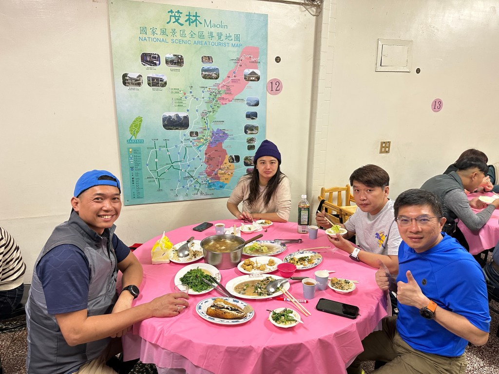 下山後,Tim提議開車到寶來的寶來小吃部去吃晚餐,在此也恰好遇到阿福等也來此,大伙互聊關心近來的狀況,吃完飯後,還得開車回家。終於解鎖了南橫F5,在內心恭喜自己及伙伴們!
