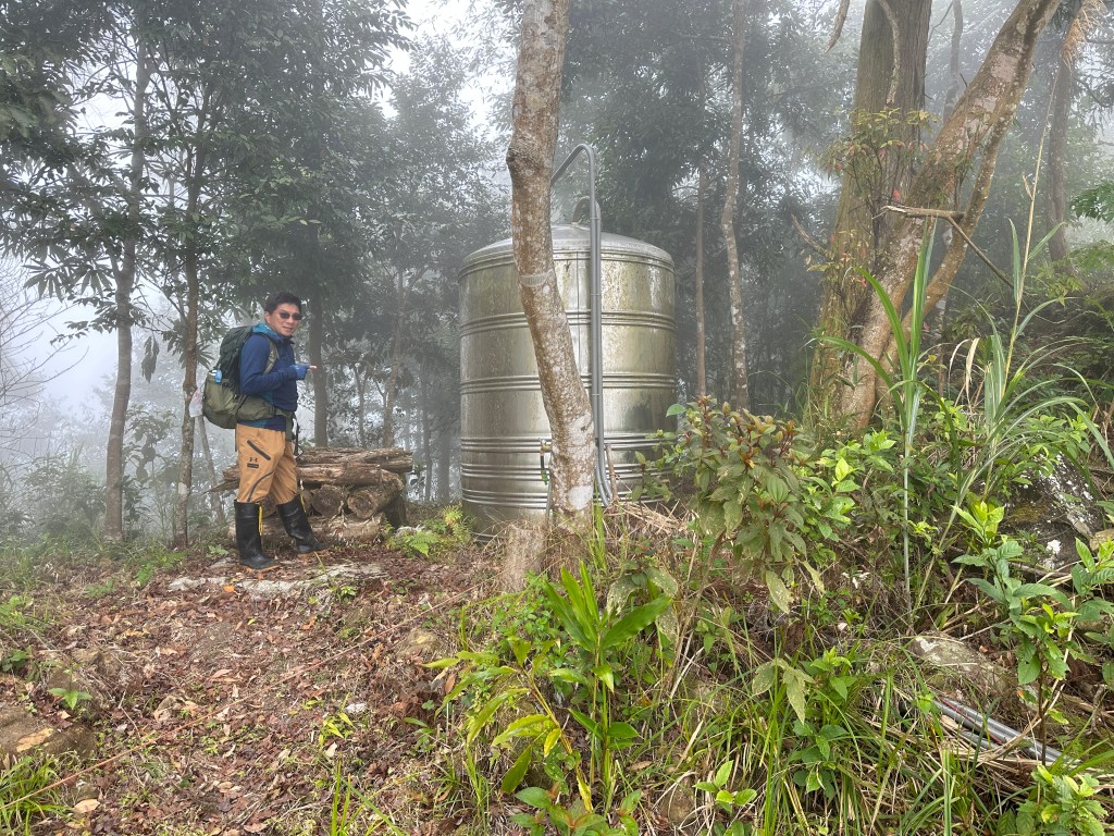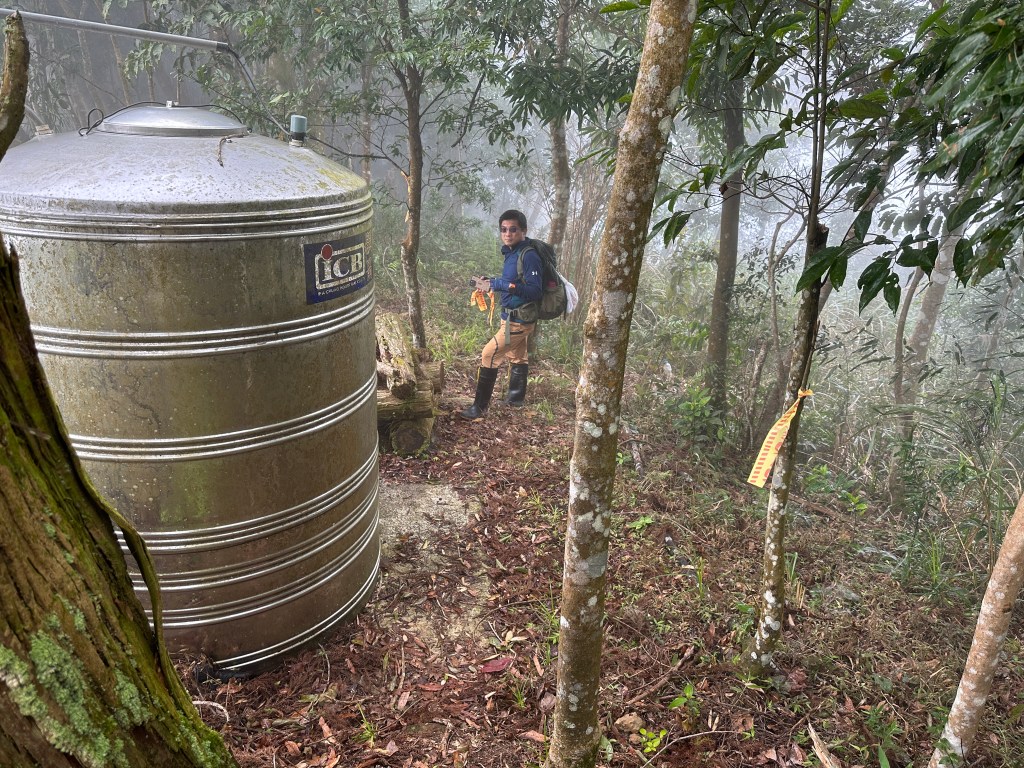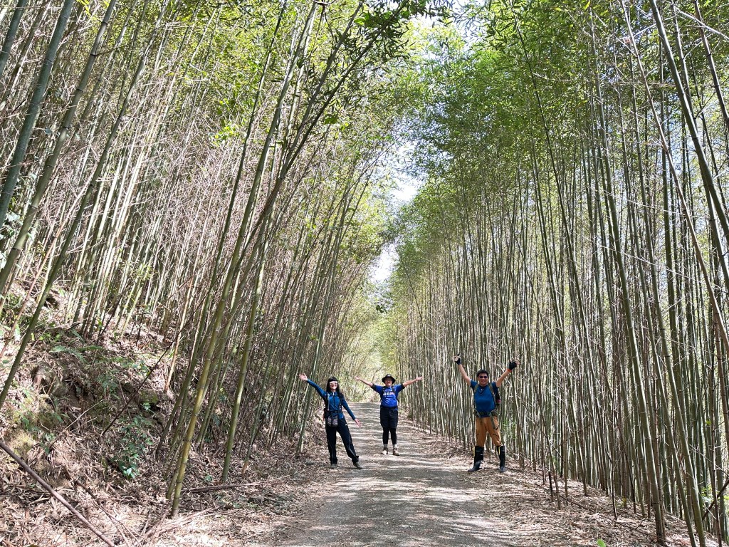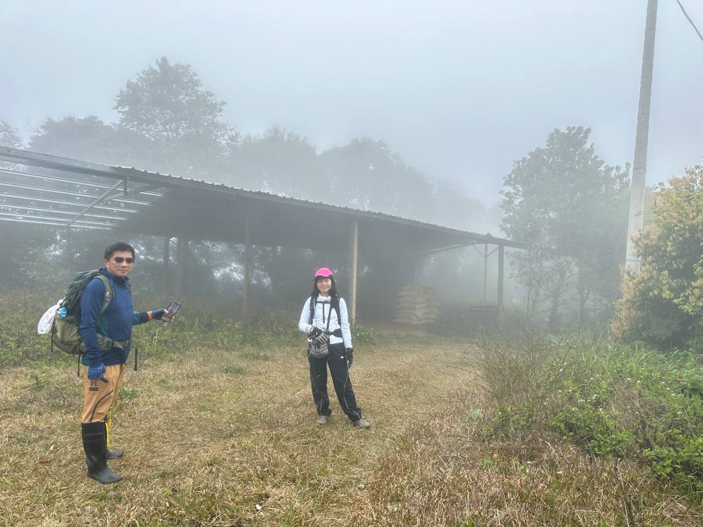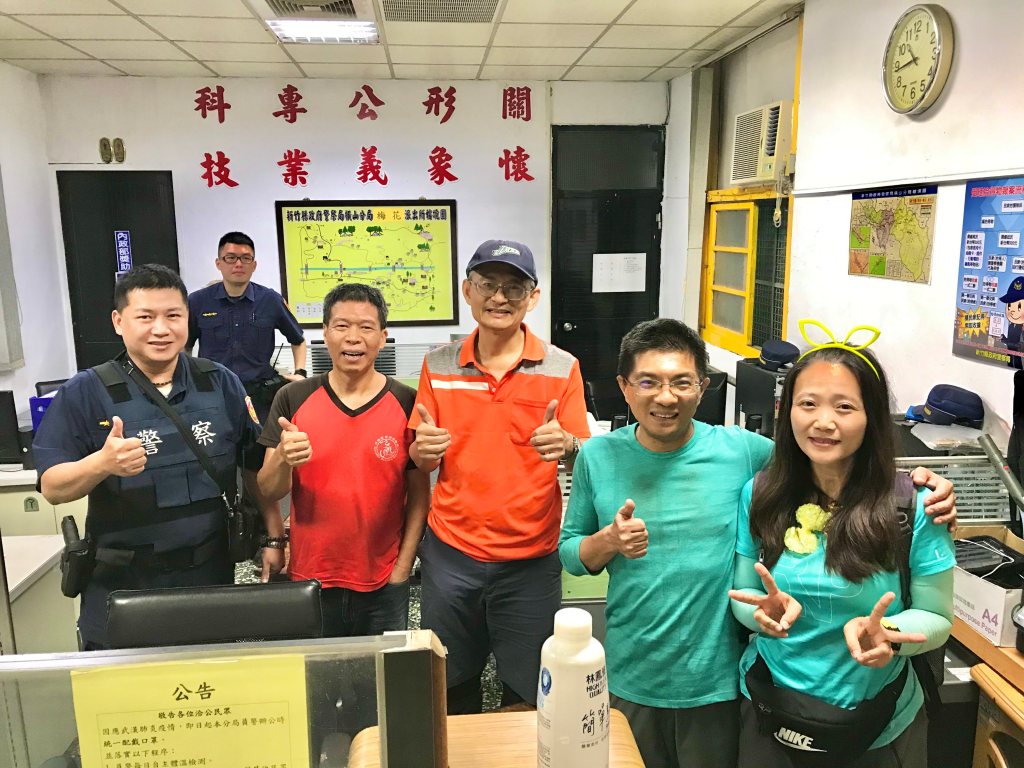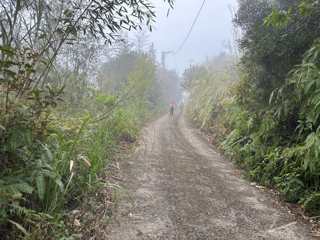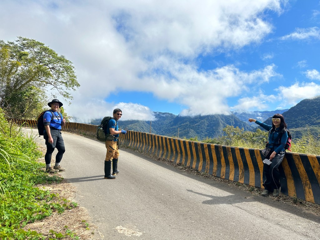 這時,采庭與正在休息中的陳警員陳大哥閒聊,無意中,采庭只是幾句話的問候,沒想到串連了在三年前我們叫了一次救援的緣分,當時在2020.06.21我們走高島縱走+石麻達山+錦屏山回到了小錦屏野溪溫泉旁的錦屏吊橋,伙伴們走不動了,先打電話給外面的接駁車進來,結果接駁車不願意,再打電話給計程車也嫌太偏僻而不想進入,再電請當地原住民看願不願意賺一筆外快結果也沒人願意,實在沒辦法,最後只好打電話給梅花派出所,當時就是陳大哥開警車來載我們四位。