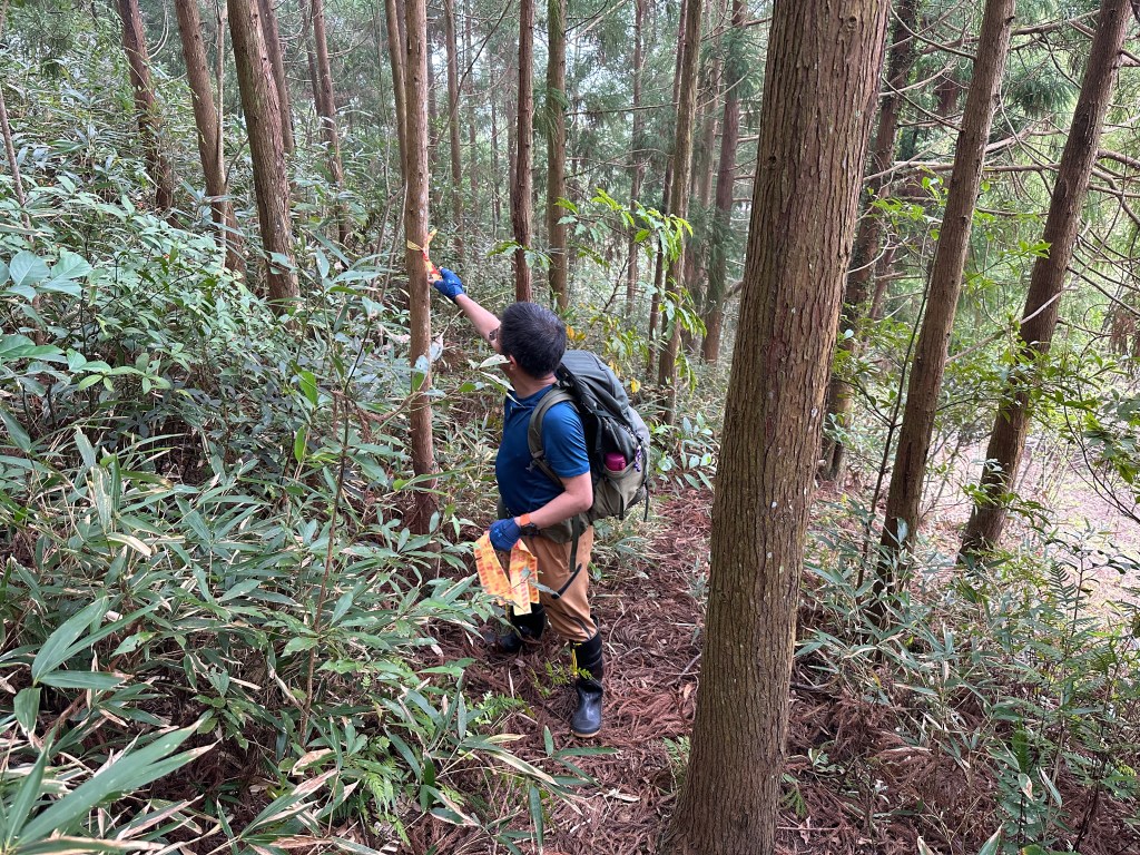 拍照後,也在關鍵處綁上了一些布條,接著就一路下山走4.3K的產業道路回到停車處,完成了今天稍具探險的路線。