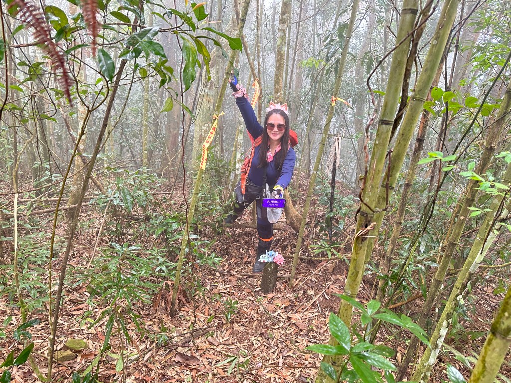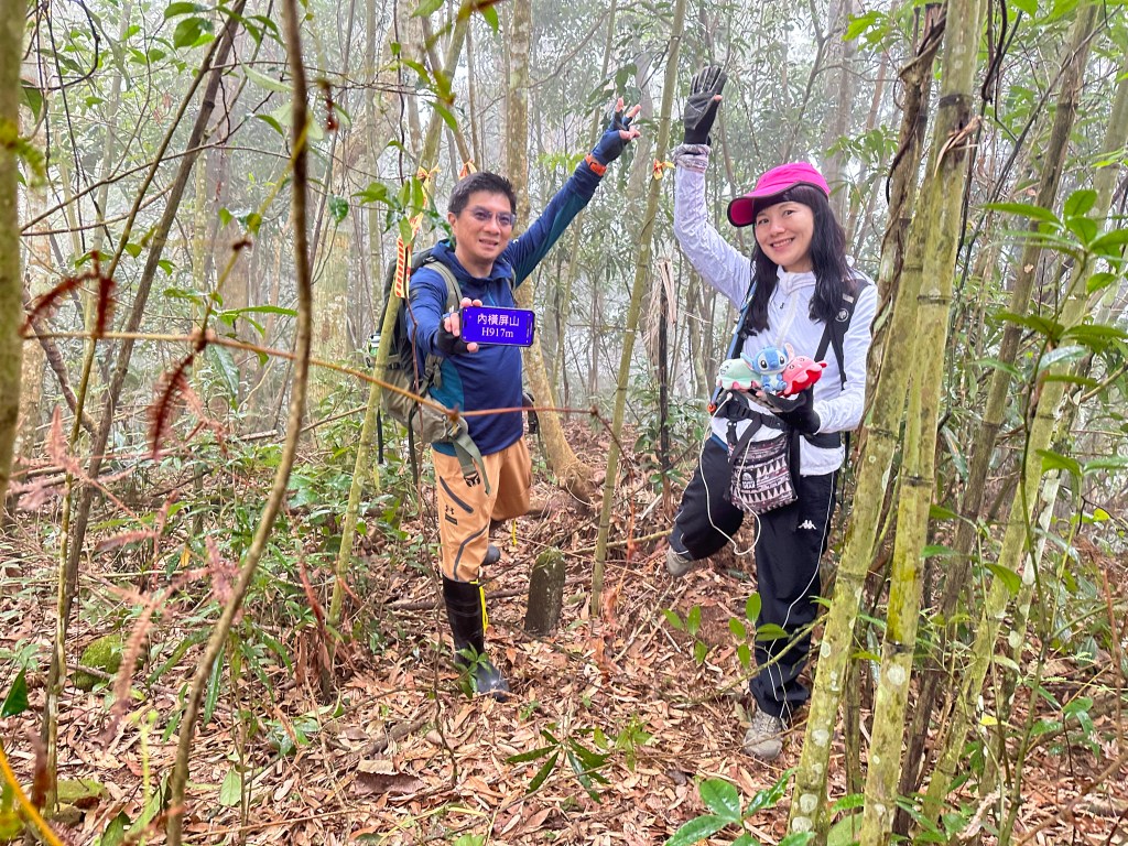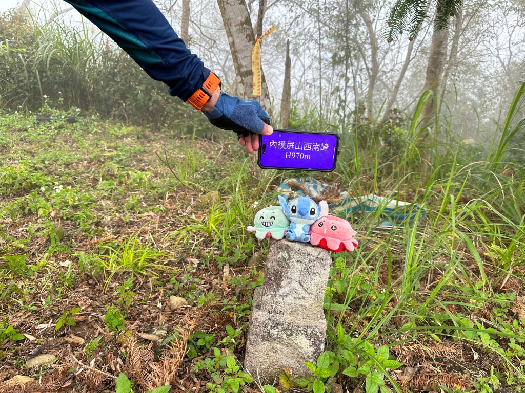 這三峰的特點就是三角點都沒有登山布條,位置都要自己找,而我們都在三角點處給他綁上了布條,相信以後朋友要找三角點應該會相對的容易。另外,這三峰都沒有名牌,因此我們只好自行利用手機的APP來顯示山峰名稱及高度。