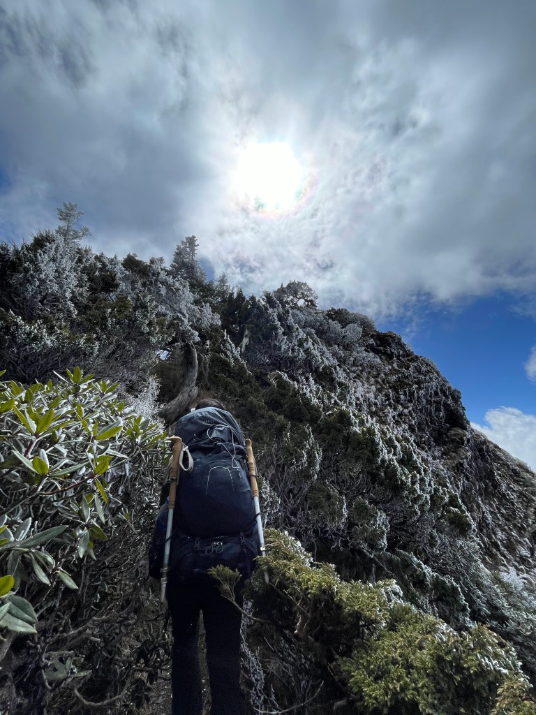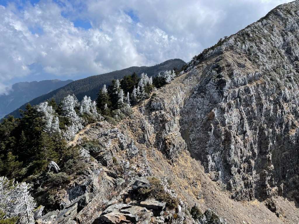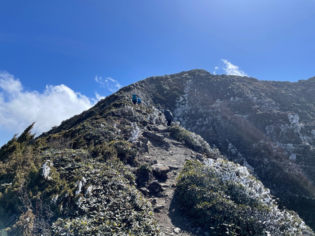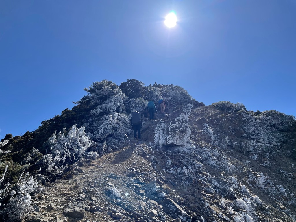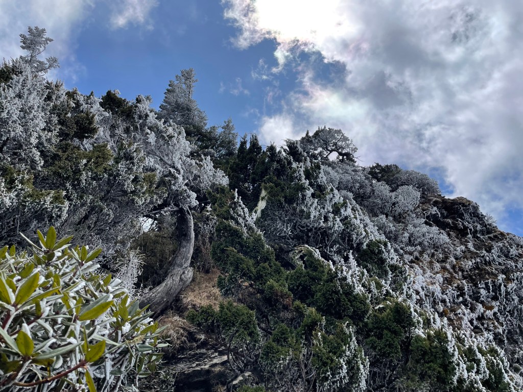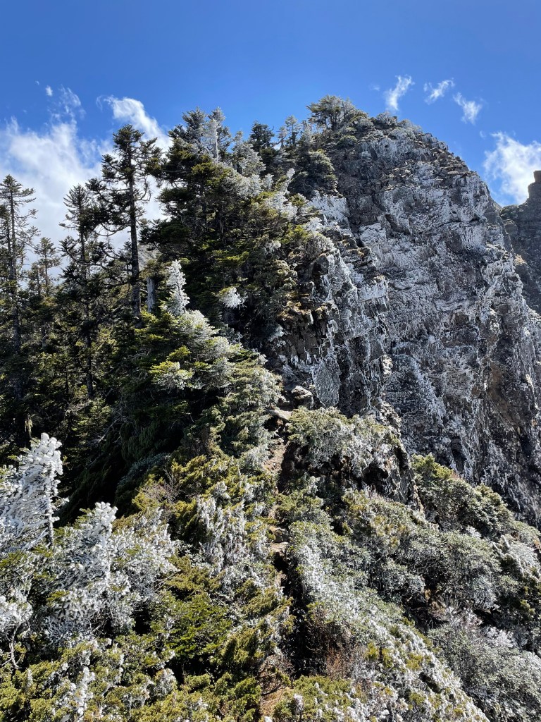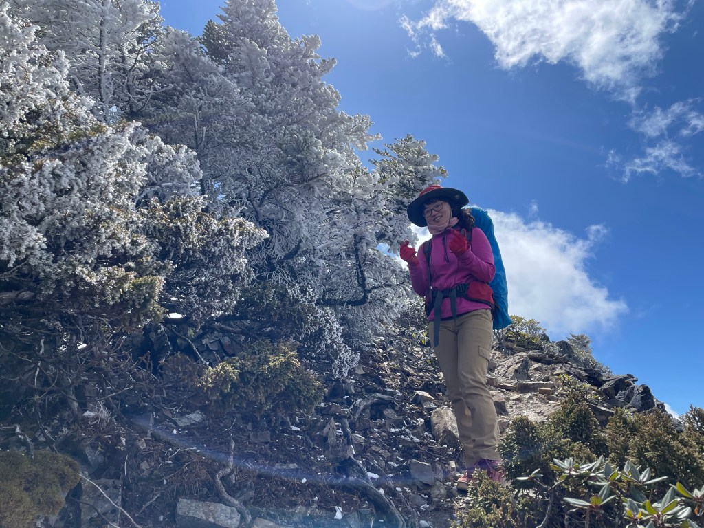 上圖:之前都是在螢幕前羨慕山友在晴空之下遇見霧淞,這次終於換我自己親眼見證了