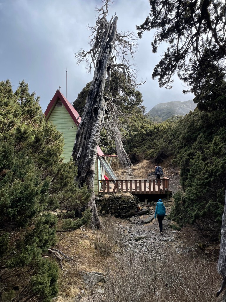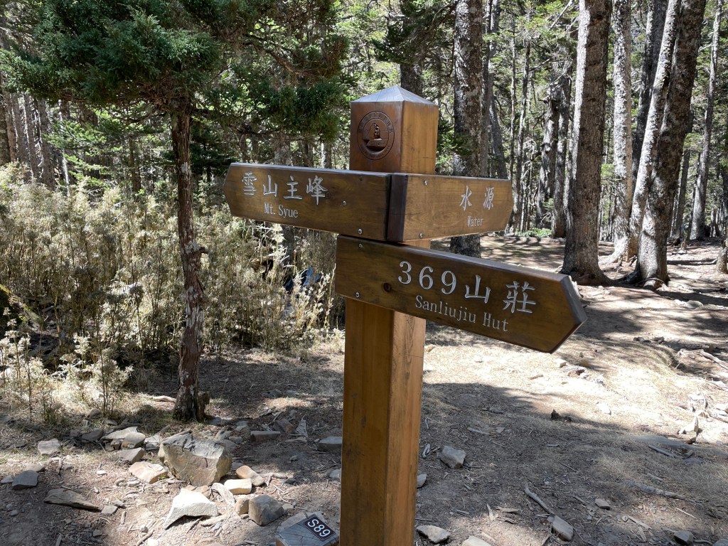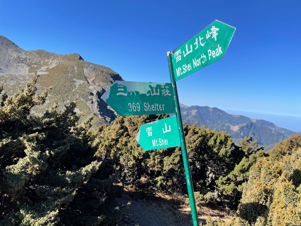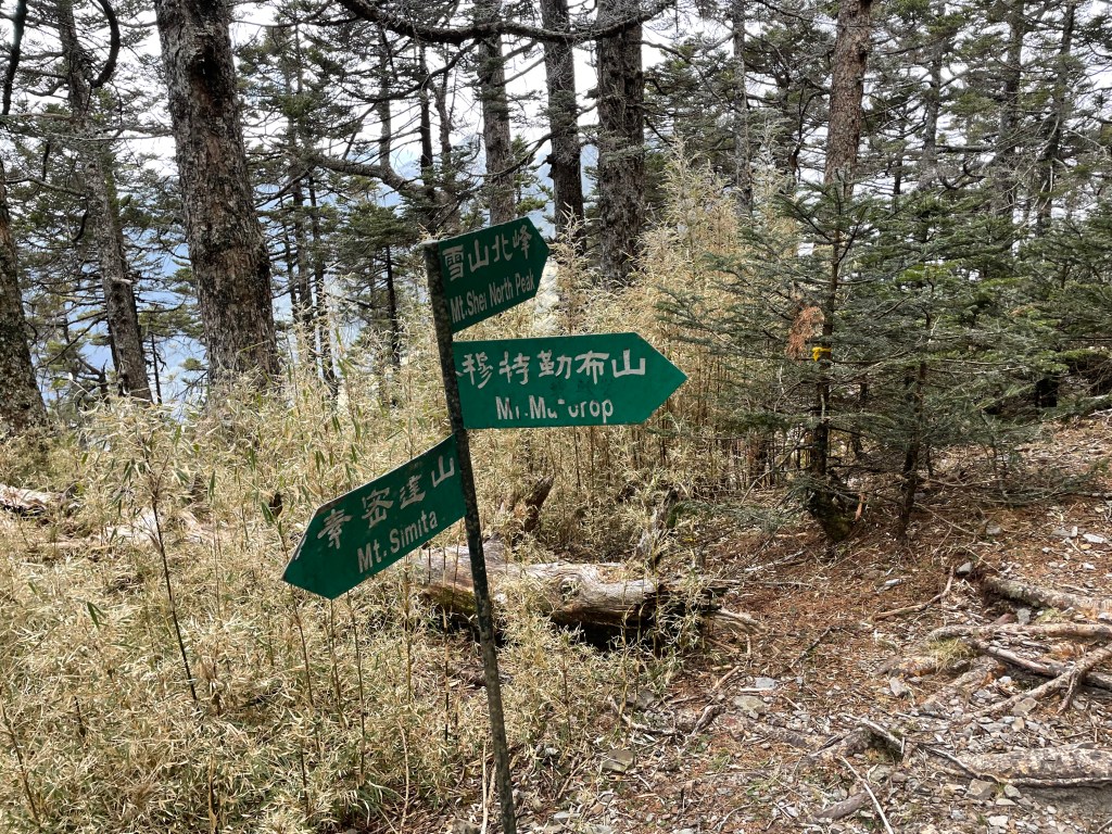 上圖:經過山屋前的路牌,我們要往雪山北峰的方向,而穆特勒布山從山屋往返則是約1小時