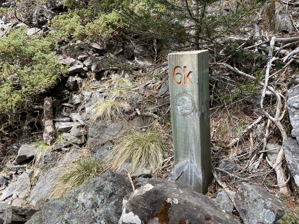 上圖:聖稜線6K路牌,從剛剛7K走到現在竟然只走了1K,就可以知道聖稜線雖然路短但地形會降低行進速度